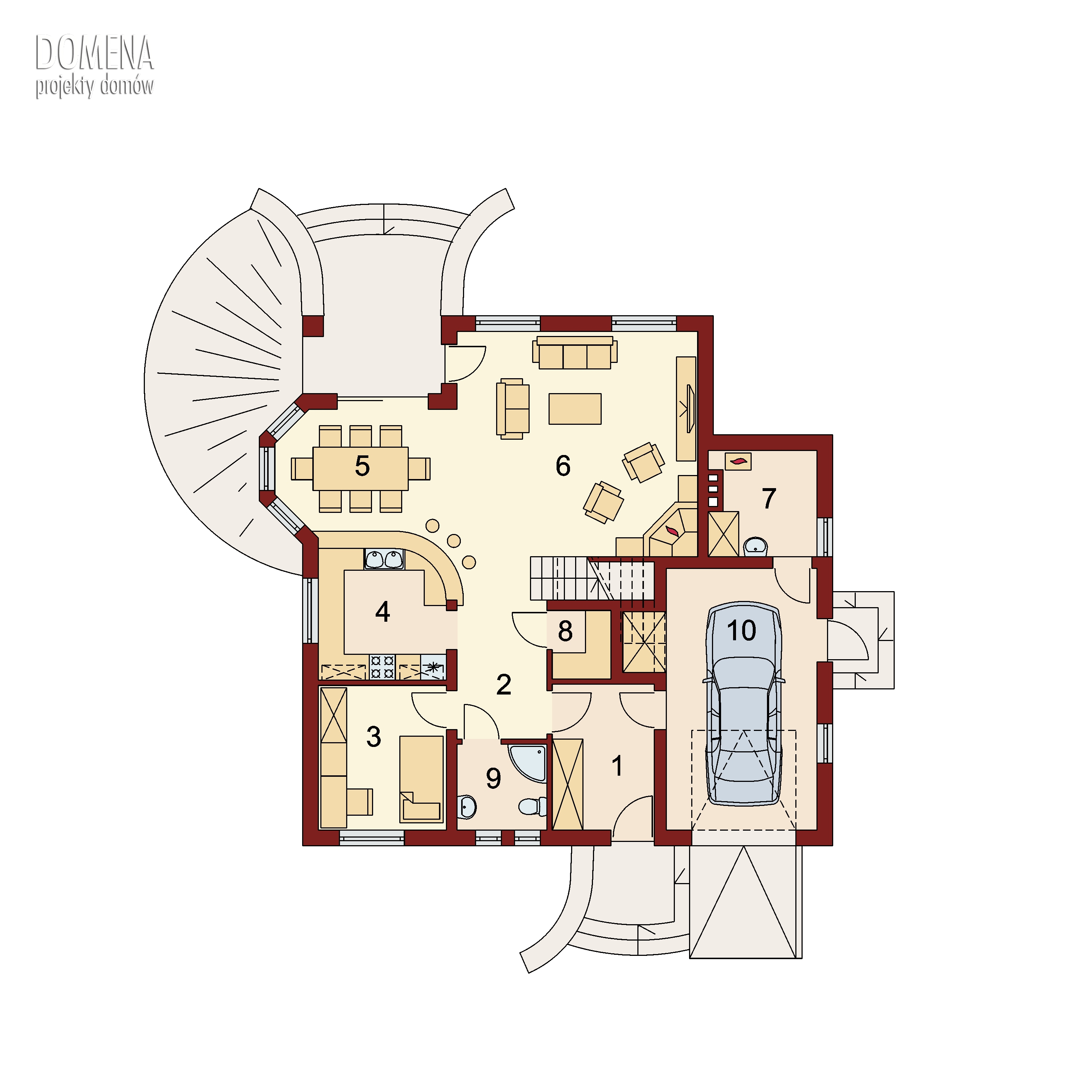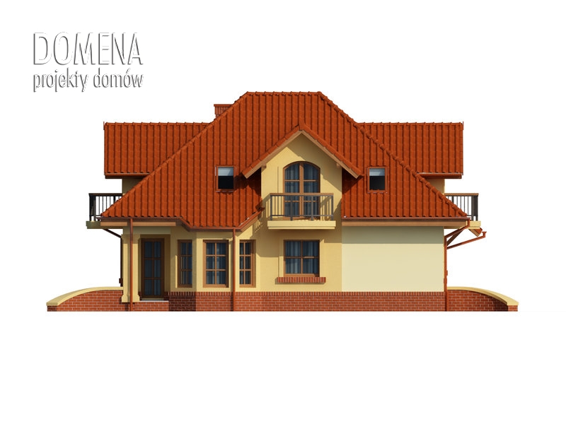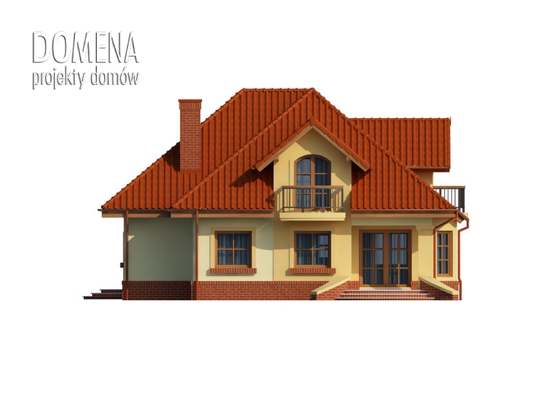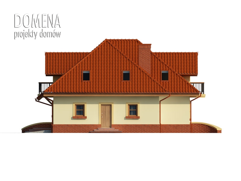 Dom z poddaszem użytkowym, przeznaczony dla 4-5-osobowej rodziny. Na parterze znajduje się przestronny pokój dzienny połączony z jadalnią i otwartą kuchnią. Rozwiązanie funkcjonalne pozwala na wydzielenie ww. pomieszczeń. Wyjście na taras z podcieniem jest możliwe zarówno z części wypoczynkowej pokoju dziennego jak i z części przeznaczonej na jadalnie. Na parterze znajduje się także dodatkowy pokój i łazienka. W bliskim sąsiedztwie kuchni dostępna jest spiżarnia. Na parterze znajduje się pomieszczenie gospodarcze, dostępne poprzez garaż. Na poddaszu znajdują się trzy sypialnie, garderoba dostępna z pokoju, łazienka z wydzielonym aneksem na pralnio-suszarnię oraz pomieszczenie strychu.