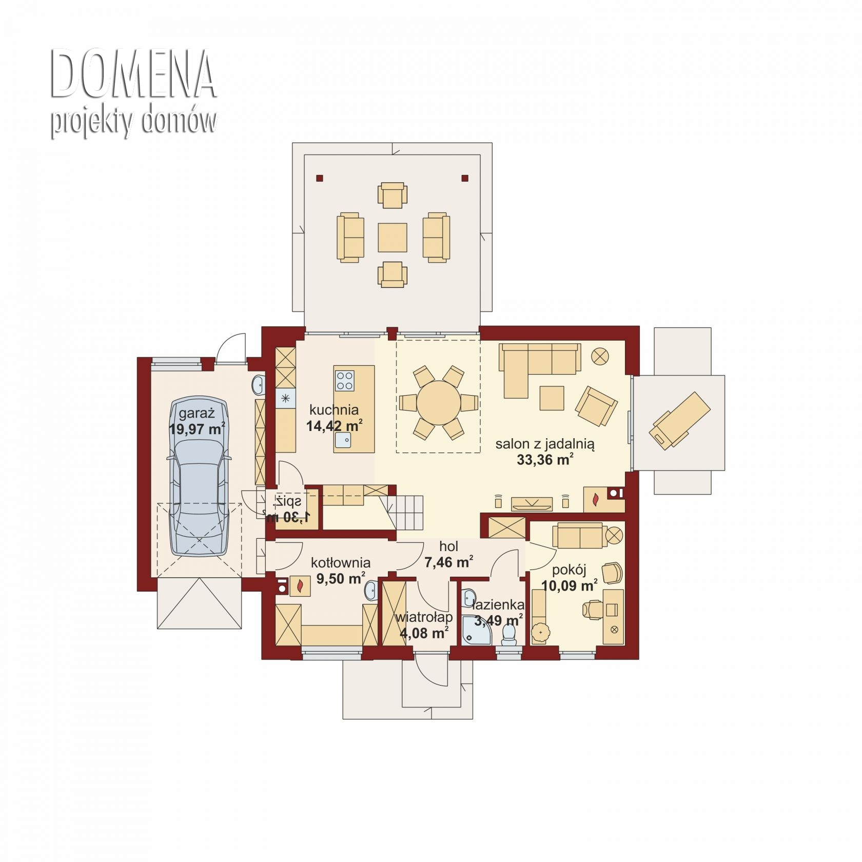 ARON PS to dom parterowy z poddaszem użytkowym, zaprojektowany dla 4-5-osobowej rodziny.
