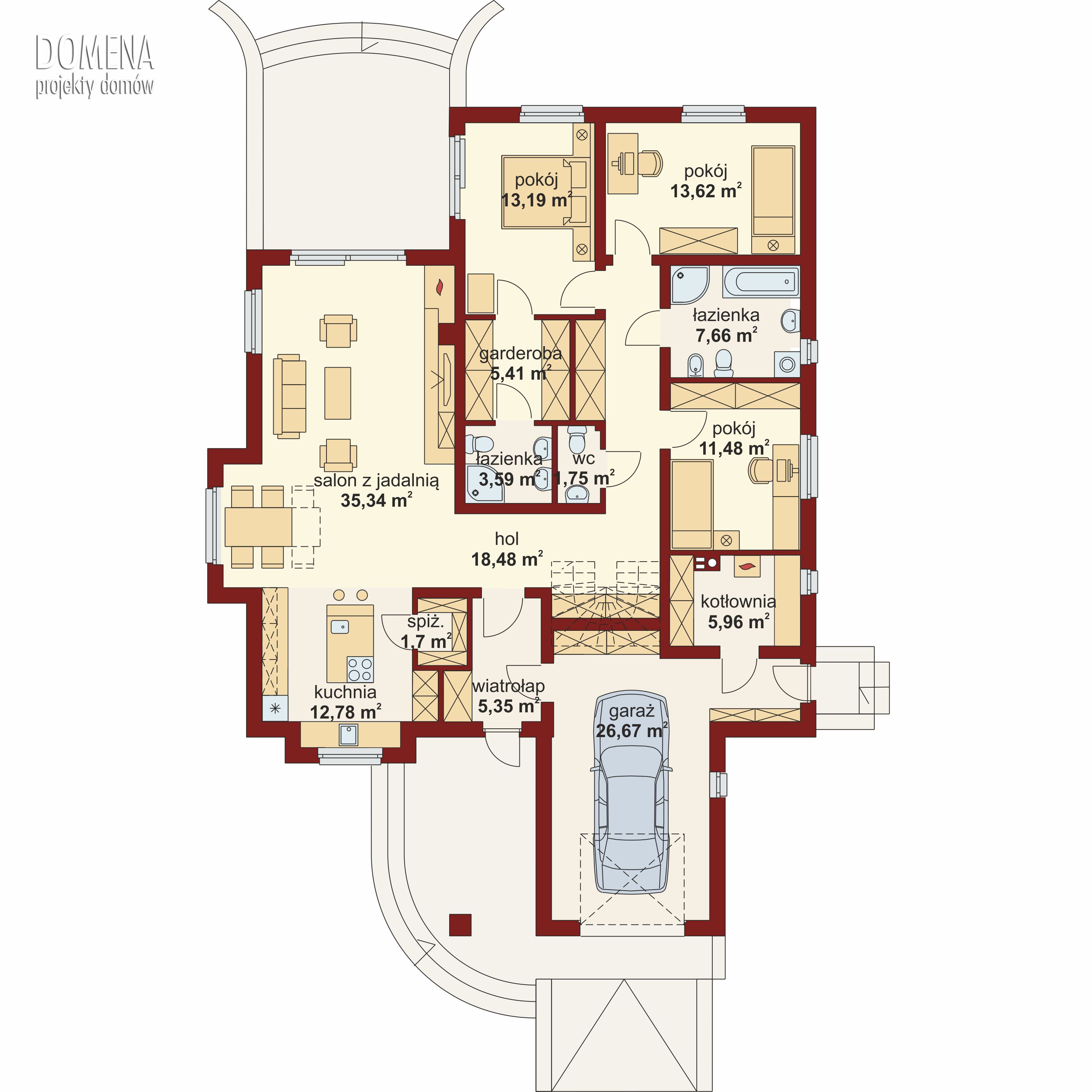 Ciekawa bryła urozmaicona przez tradycyjne elementy oraz funkcjonalny układ wnętrza z klarownym podziałem na część publiczną i prywatną to główne atuty Arystotelesa – parterowego domu idealnego dla 4 osobowej rodziny.