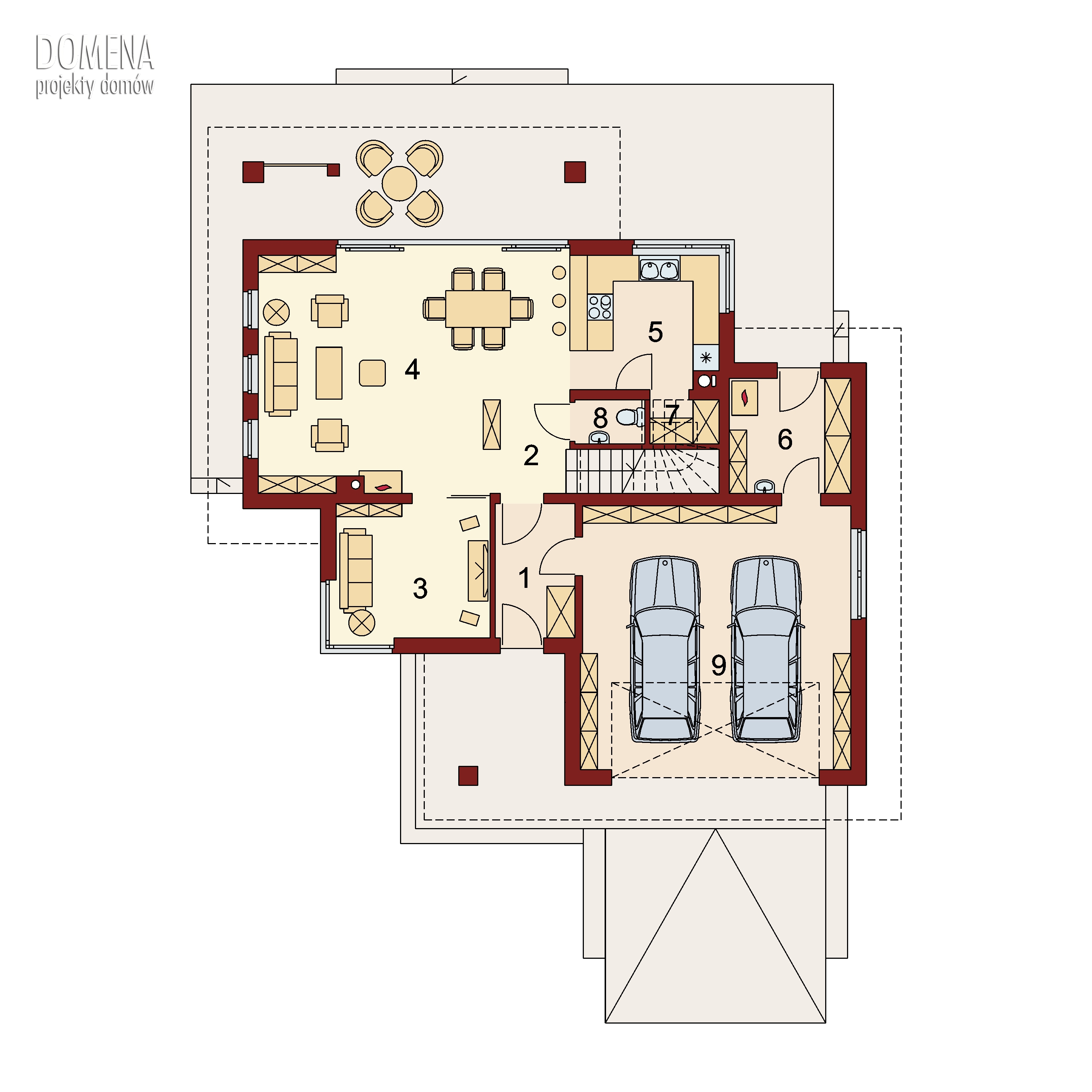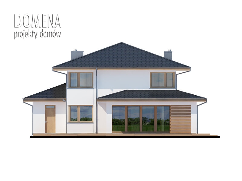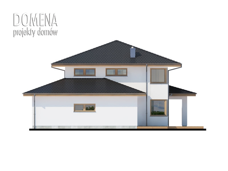 Dom piętrowy, przestronny, wygodny, idealny dla 4 do 5-osobowej rodziny. Aslan 2 to także przykuwające uwagę duże przeszklenia, nowoczesna bryła, „złagodzona” użytym na elewacji i tarasach drewnem, czytelne rzuty. Bezpośrednio po wkroczeniu do domu wzrok przyciąga okazałe przeszklenie salonu, za którym maluje się okoliczny pejzaż. Zadaszenie nad dużym tarasem skutecznie chroni przed upalnym letnim słońcem, wpuszcza natomiast zimowe, padające pod niskim kątem promienie słoneczne, a także zabezpiecza przed deszczem. Na parterze oprócz wspomnianego obszernego salonu oraz przylegającej do niego kuchni, tuż przy strefie wejściowej znajduje się także dodatkowy pokój. Dzięki swojej lokalizacji może pełnić rolę pokoju do pracy, gościnnego lub TV. Praktycznym rozwiązaniem jest także wejście do pomieszczenia gospodarczego od zewnątrz, co ułatwia np. prace wokół domu. Pierwsze piętro to typowa część nocna. Zajmują je trzy sypialnie oraz garderoby i łazienki. Jedna z sypialni jest wyposażona w indywidualną garderobę i łazienkę, które po połączeniu w całość mogą się przekształcić w wygodny, dostępny z hallu salon kąpielowy.