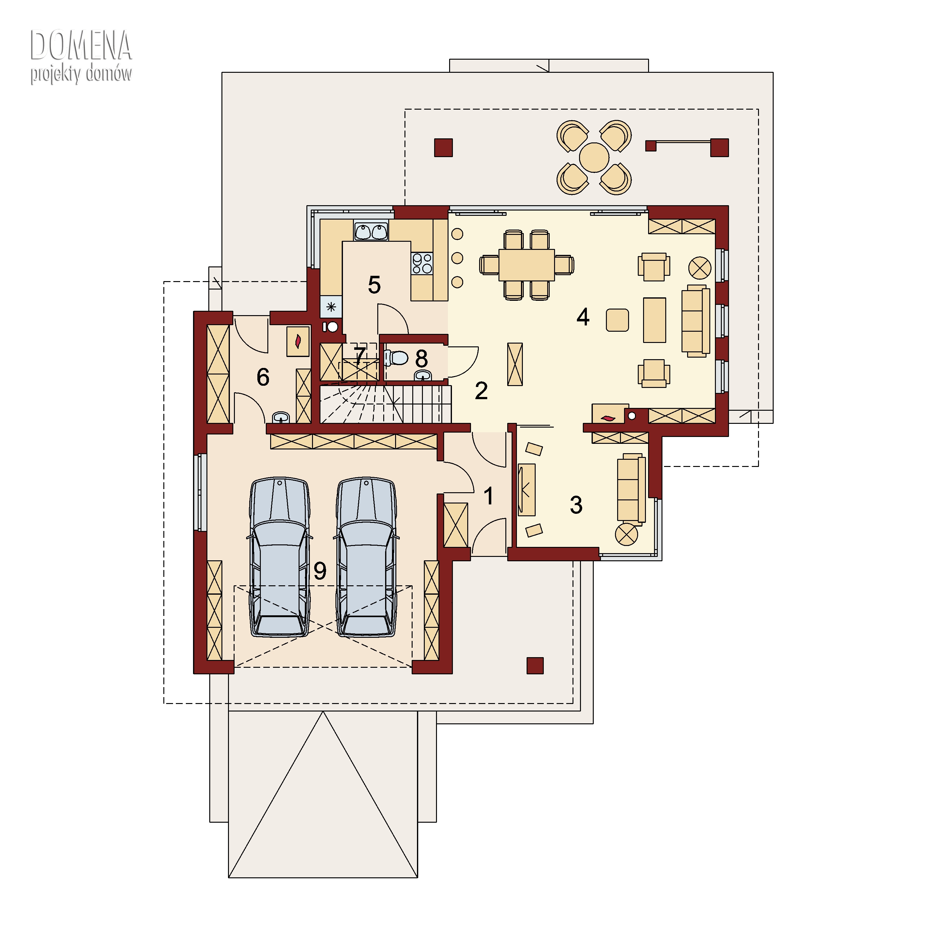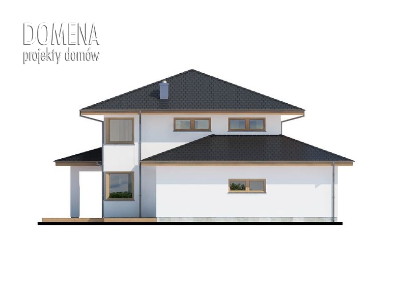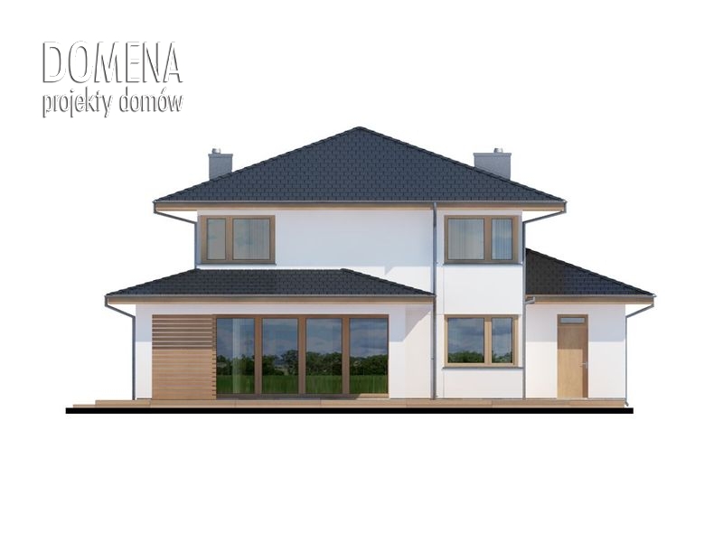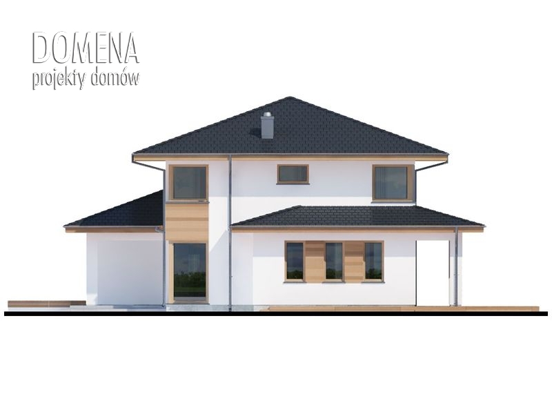 Dom piętrowy, przestronny, wygodny, idealny dla 4 do 5-osobowej rodziny. Aslan 2 to także przykuwające uwagę duże przeszklenia, nowoczesna bryła, „złagodzona” użytym na elewacji i tarasach drewnem, czytelne rzuty. Bezpośrednio po wkroczeniu do domu wzrok przyciąga okazałe przeszklenie salonu, za którym maluje się okoliczny pejzaż. Zadaszenie nad dużym tarasem skutecznie chroni przed upalnym letnim słońcem, wpuszcza natomiast zimowe, padające pod niskim kątem promienie słoneczne, a także zabezpiecza przed deszczem. Na parterze oprócz wspomnianego obszernego salonu oraz przylegającej do niego kuchni, tuż przy strefie wejściowej znajduje się także dodatkowy pokój. Dzięki swojej lokalizacji może pełnić rolę pokoju do pracy, gościnnego lub TV. Praktycznym rozwiązaniem jest także wejście do pomieszczenia gospodarczego od zewnątrz, co ułatwia np. prace wokół domu. Pierwsze piętro to typowa część nocna. Zajmują je trzy sypialnie oraz garderoby i łazienki. Jedna z sypialni jest wyposażona w indywidualną garderobę i łazienkę, które po połączeniu w całość mogą się przekształcić w wygodny, dostępny z hallu salon kąpielowy.