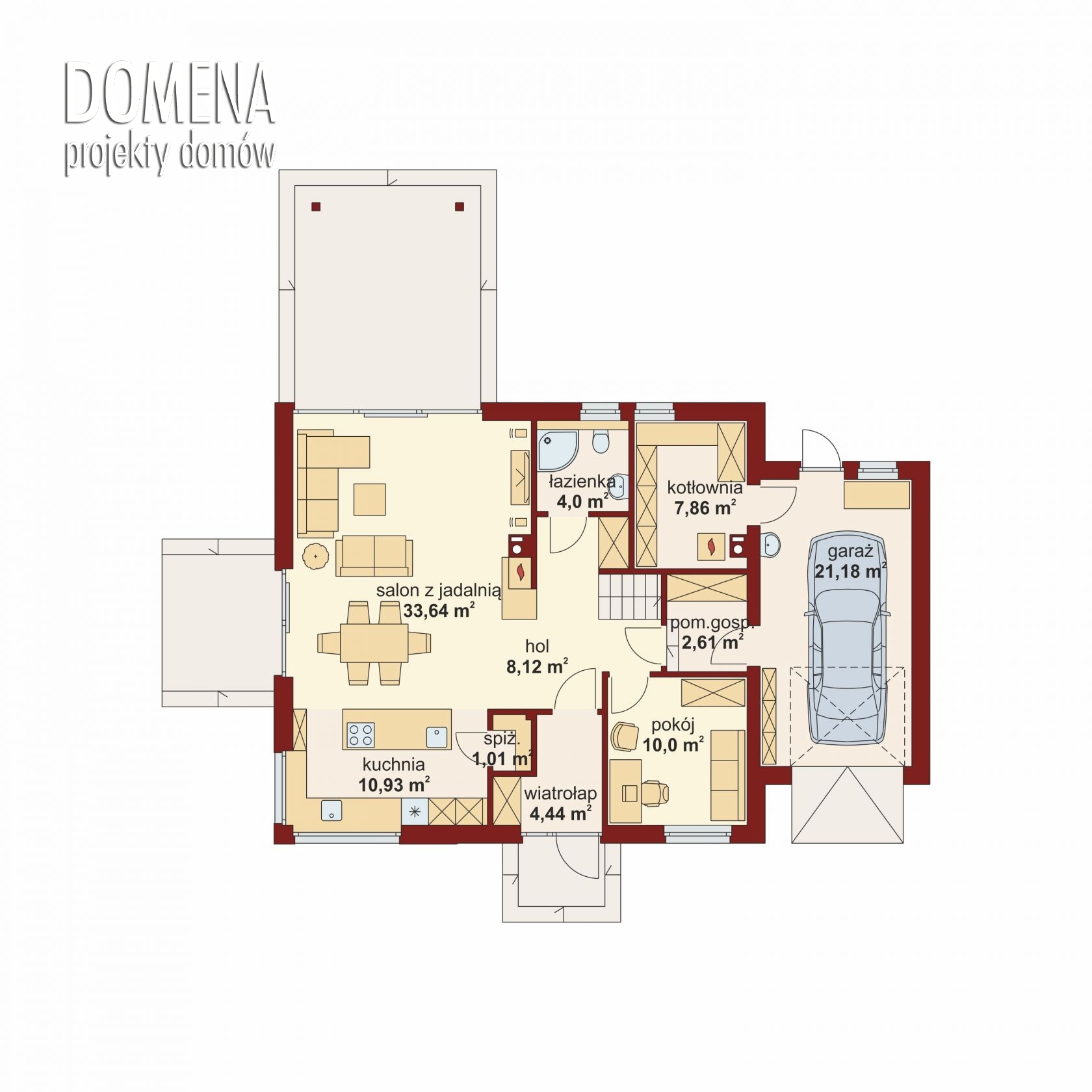 AUGUST PS to dom parterowy z poddaszem użytkowym, zaprojektowany dla 4-5-osobowej rodziny. Na parterze znajduje się: przestronny salon z jadalnią i dwoma wyjściami na tarasy ( w tym jeden zadaszony), łatwa do wydzielenia w ramach adaptacji kuchnia ze spiżarnią oraz gabinet, który wraz ze położoną niedaleko łazienką doskonale sprawdzi się także jako pokój gościnny czy dodatkowa sypialnia. Dodatkowo znajdziemy tu kotłownię i jednostanowiskowy garaż do którego dojść można przez zlokalizowane pod schodami pomieszczenie gospodarcze.