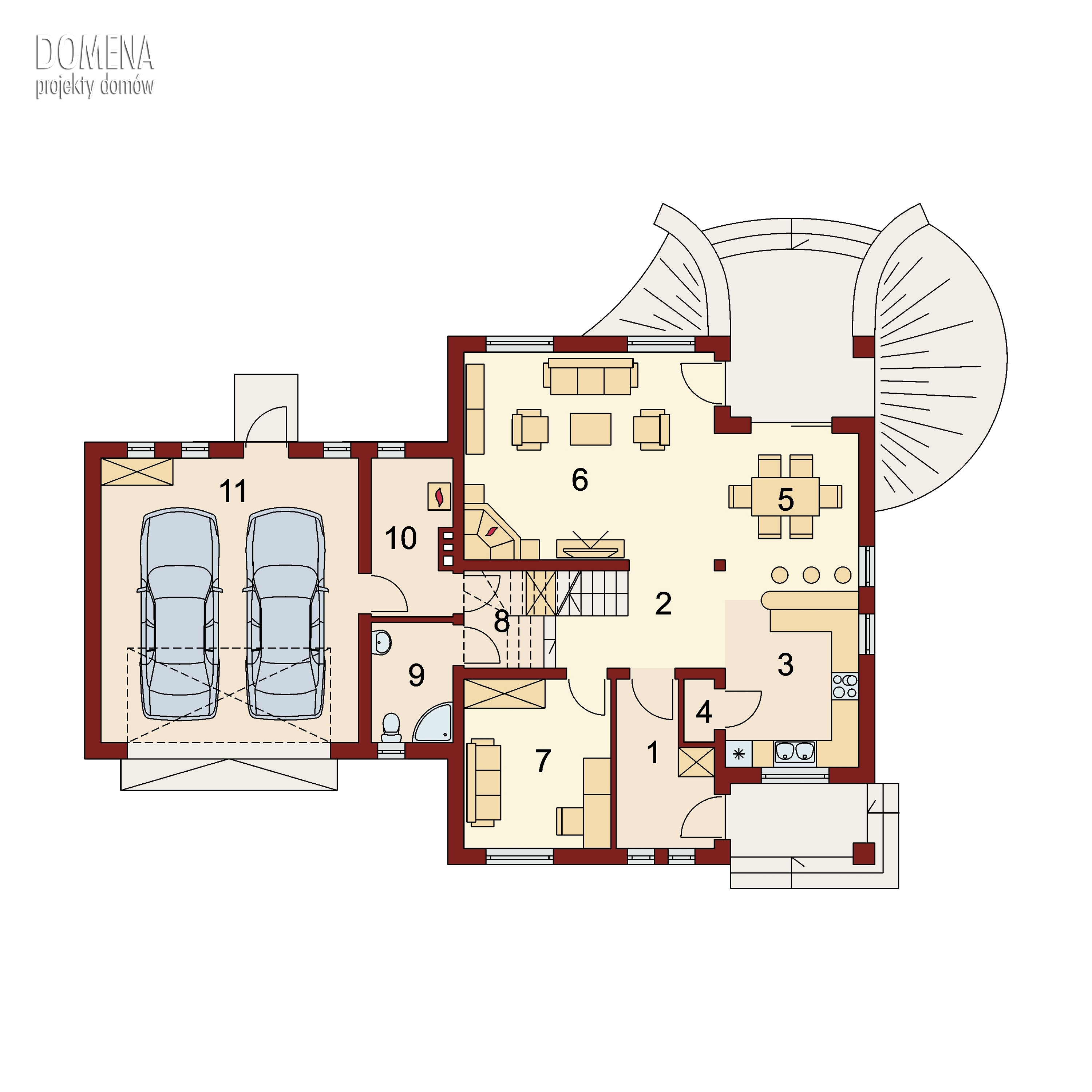 Wymarzony dom dla 4-5 osobowej rodziny. Pomieszczenia usytuowane na parterze idealnie ze sobą współgrają. Umieszczenie spiżarni w sąsiedztwie z kuchenką oraz zlewozmywakiem tworzy praktyczną strefę roboczą w kuchni. Garderoba łączy część mieszkalną parteru z gospodarcza, co świadczy o doskonałym wykorzystaniu przestrzeni. Dodatkowym wyjściem na taras w salonie, możemy przejść w stronę ogrodu nie zakłócając nastroju biesiadników w jadalni. Zaletą jest również bezpośrednie wejście w elewacji ogrodowej do strefy gospodarczej . Dzięki niemu możemy dostać się do garażu, a także łazienki bez zbędnej ingerencji w część mieszkalną domu. Również poddasze, z trzema ustawnymi pokojami oraz obszerną łazienką, urzeknie swoją funkcjonalnością. Ogólnodostępną garderobę doceni każdy domownik. Strych dostępny bezpośrednio z klatki schodowej to doskonały pomysł na dodatkowy pokój hobby lub prywatną siłownię.