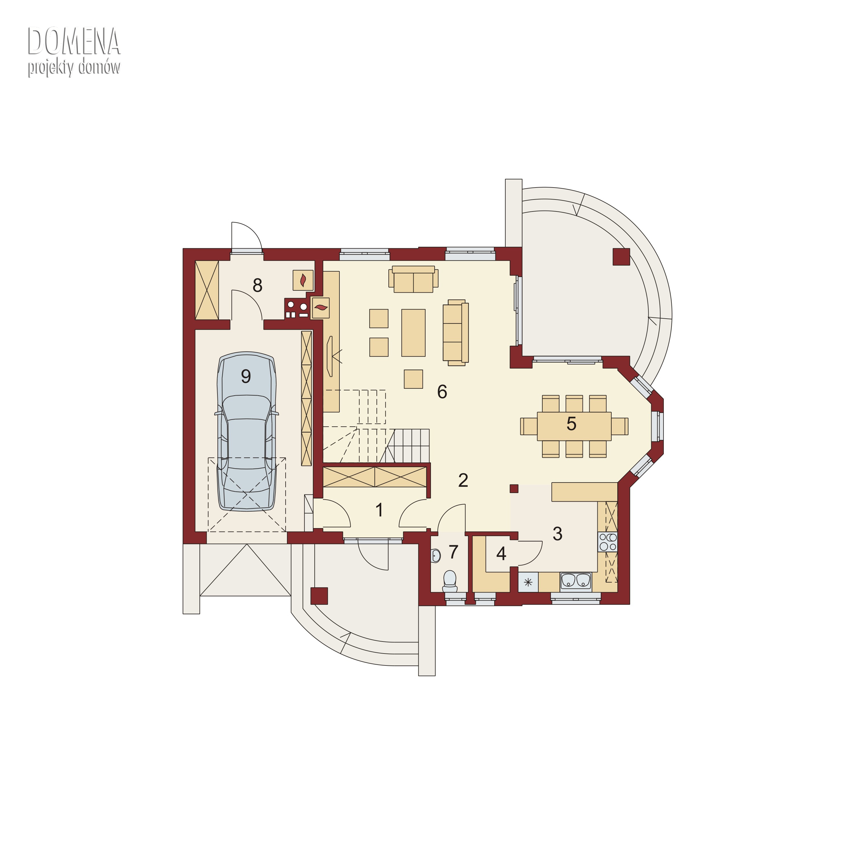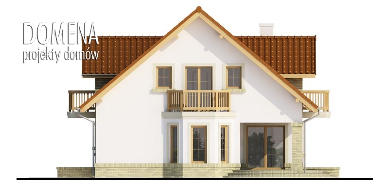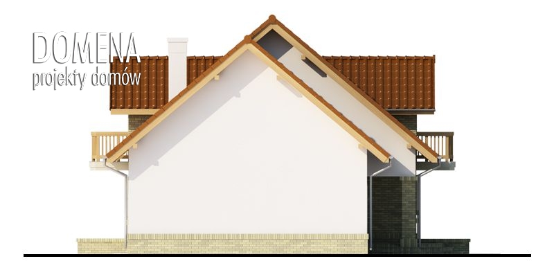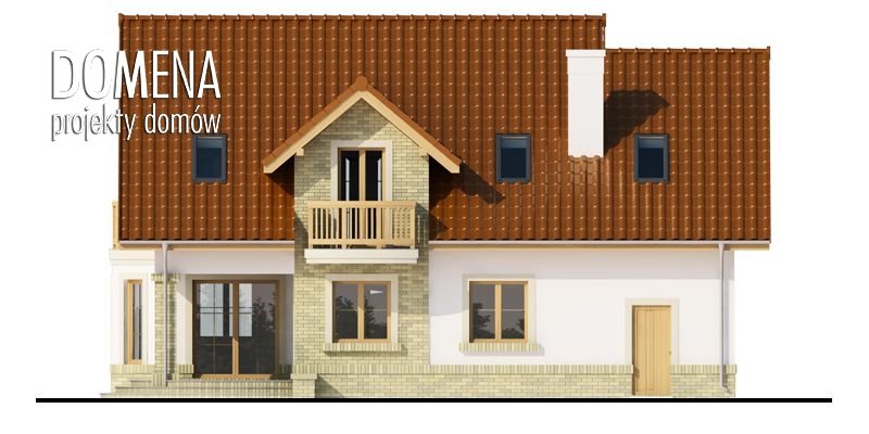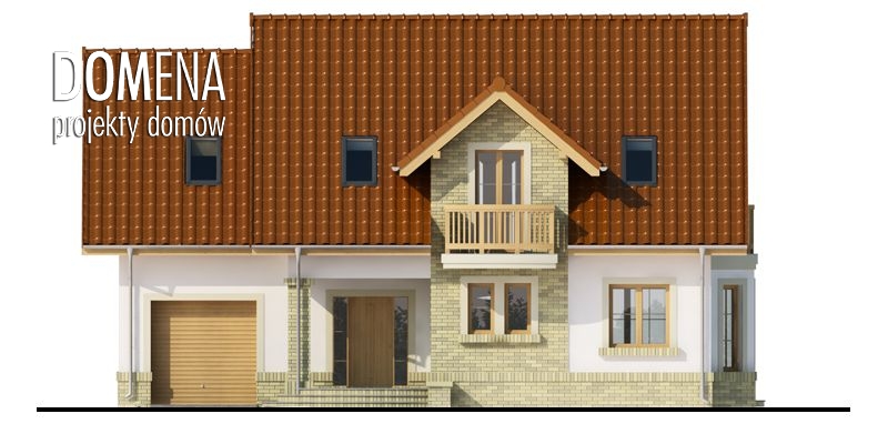 to funkcjonalny dom o tradycyjnej bryle, przeznaczony dla 4-osobowej rodziny. Mijając zadaszone wejście, trafiamy do ustawnego wiatrołapu z miejscem na szafy pod zabudowę. Wiatrołap dzieli strefę dzienną domu ze strefą gospodarczą. W skład strefy dziennej wchodzi oświetlona wieloma przeszkleniami jadalnia umieszczona w wykuszu, salon z przytulnym kominkiem i widokiem na zadaszony taras, otwarta kuchnia z praktyczną spiżarnią oraz wc. Zwolennicy kuchni zamkniętych, dzięki zastosowaniu ścianki działowej, mają możliwość wydzielenia samej kuchni lub całej części kuchenno-jadalnianej. Według potrzeb domowników, istnieje możliwość przekształcenia wc w łazienkę kosztem spiżarni. Dostęp na taras przewidziano zarówno z salonu jak i strefy jadalni. Część gospodarcza domu to jednostanowiskowy garaż oraz pomieszczenie gospodarcze/kotłownia wyposażone w dodatkowe wyjście na ogród. Na poddaszu znajduje się strefa nocna domu, która składa się z trzech sypialni, ogólnodostępnej łazienki oraz strychu. Dwa pokoje zaprojektowano z odrębną garderobą, dodatkowo jedna z sypialni posiada indywidualną łazienkę. Strych dostępny z półpiętra można w ramach adaptacji przeznaczyć na dodatkowy pokój hobby, gabinet itp.