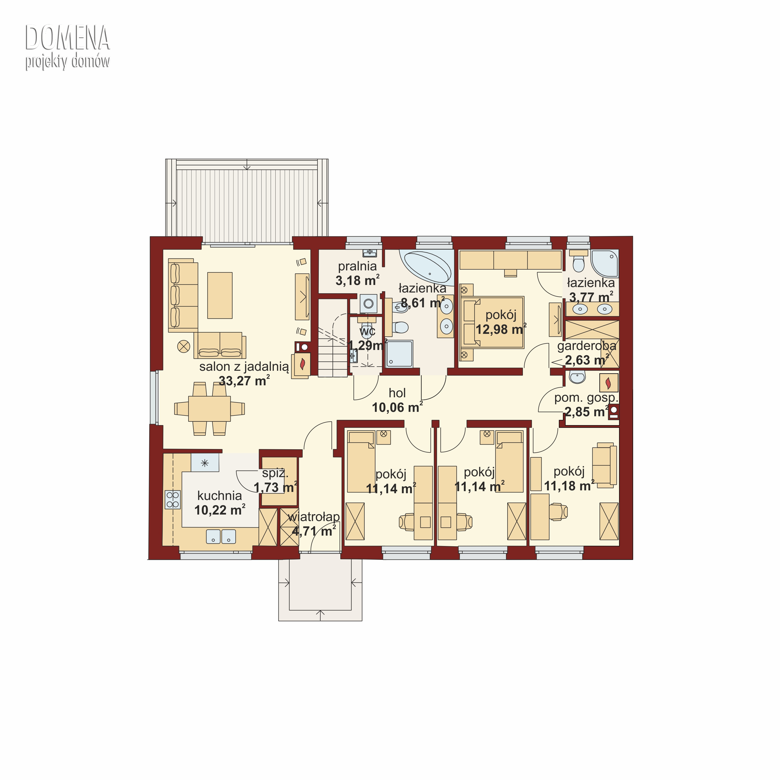 Klasyczna bryła DOMENY 103 T została stworzona z myślą o 4-5, a po zaadaptowaniu strychu nawet 6-7-osobowej rodzinie.