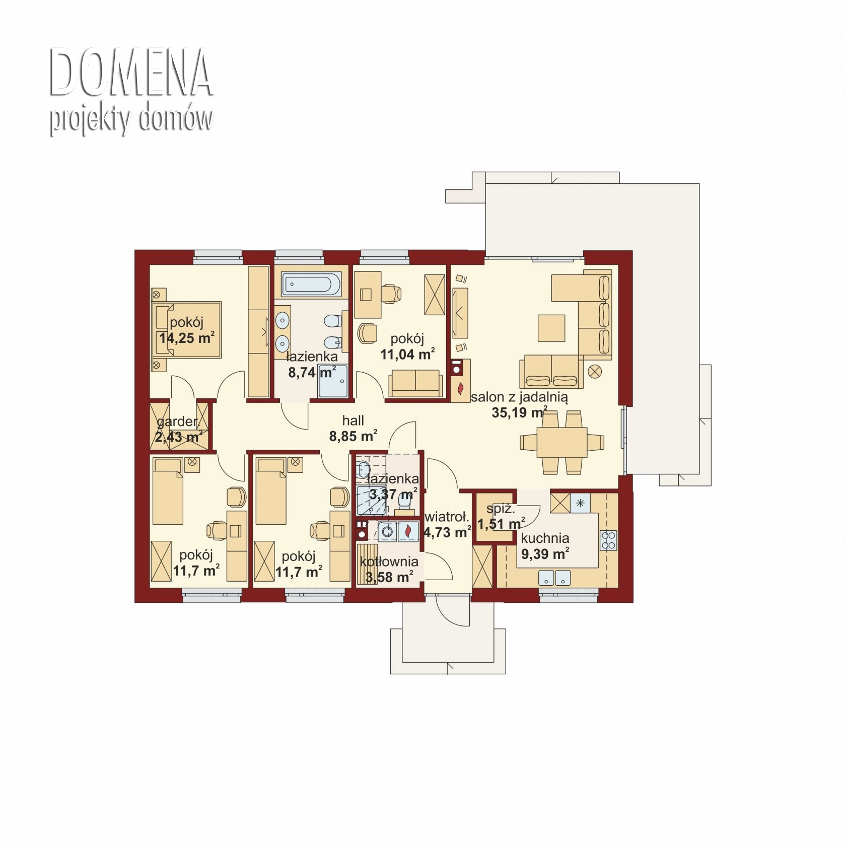Jeżeli chodzi o dom podobny, a posiadający również cztery sypialnie i mieszący się w tej szerokości, to niestety nie mamy takiego w swej kolekcji. Natomiast, jeżeli chodzi o domy podobne, z trzema sypialniami, to przy szerokości do 14m możemy zaproponować: Atlant 3 PS, Elian 3, Enzo 3, Focjusz 3, Gorgiasz 3, Synezjusz 3 oraz Timor 3.
