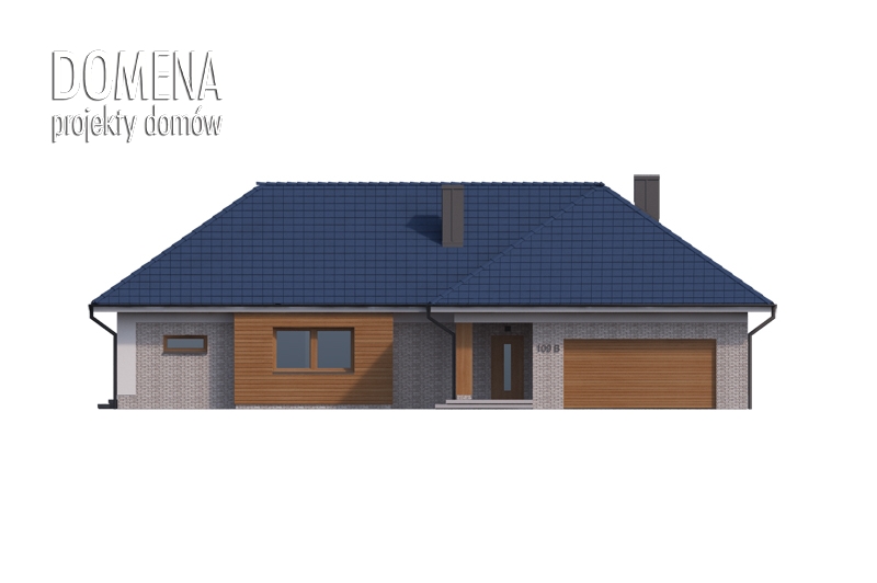 DOMENA 109 B to luksusowy dom parterowy, który zaspokoi wszelkie wymagania 4,5 osób. Spacer po parterze zaczynamy z przedsionka z miejscem na szafę, który zapewnia dostęp do garażu, części dziennej i nocnej budynku, a w razie potrzeby także poddasza zaadaptowanego na cele mieszkalne.