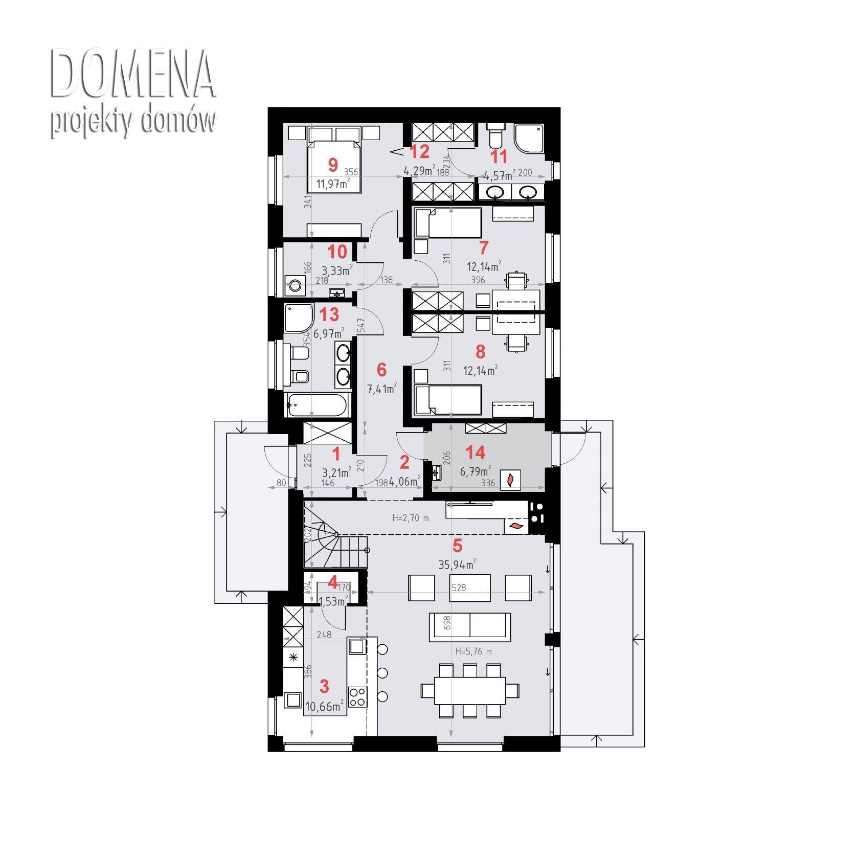 DOMENY 123 to projekt dla 4-5 osobowej rodziny, stworzony na wąską działkę.