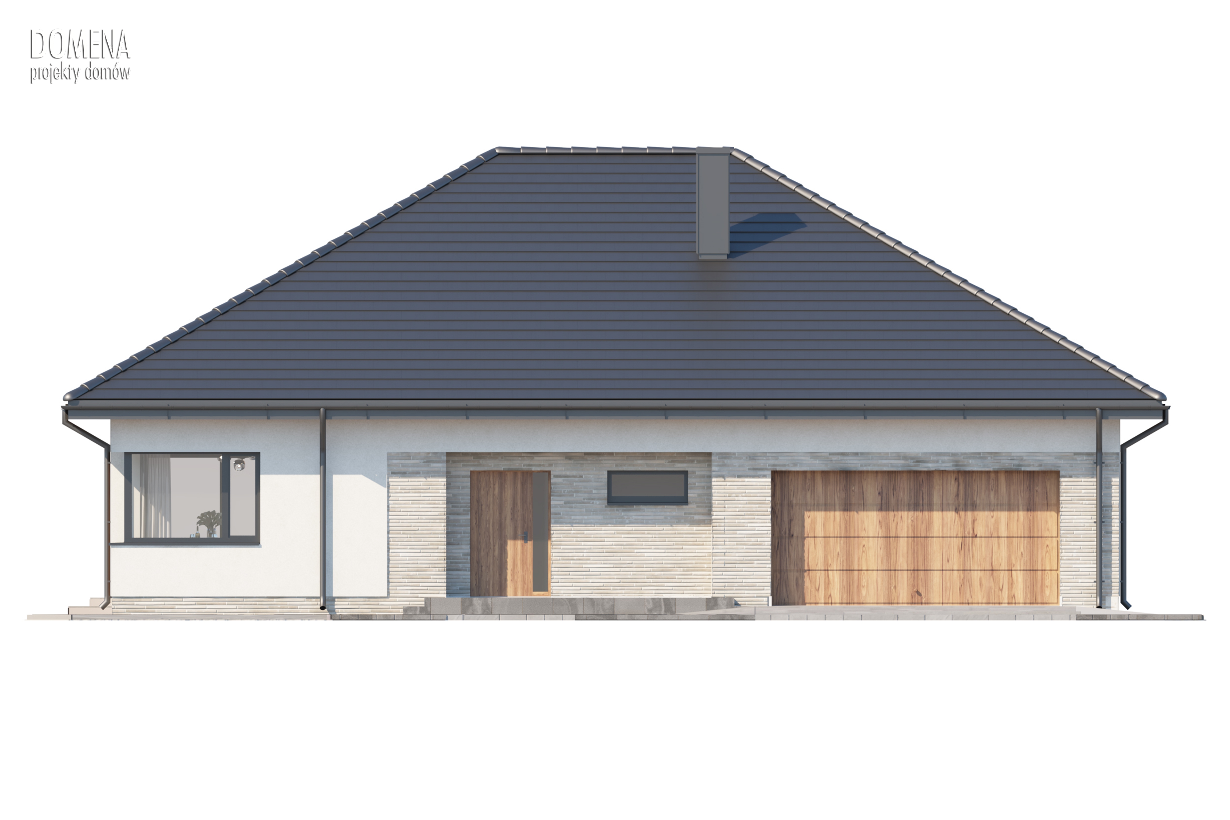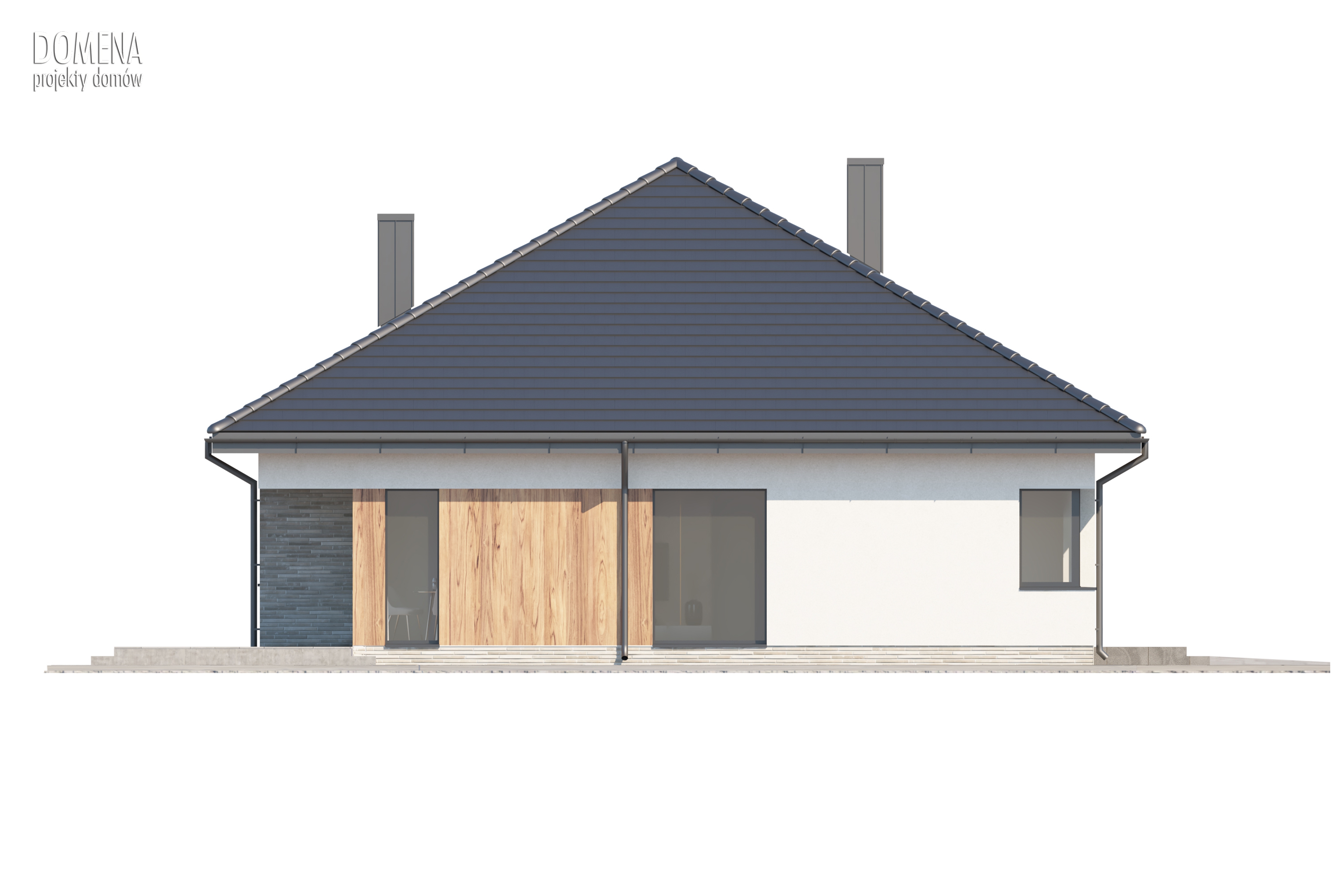 Wizualizacja jest propozycją tego jak dany projekt domu oraz jego otoczenie można zaaranżować. Sposób prowadzenia tarasu, kształt murków i elementy małej architektury typu pergole, donice itp. nie są objęte zakresem projektu. W związku z powyższym na projekcie budowlanym elementy te mogą nie być uwzględnione w projekcie ( patrz pergole ) lub zmieniony może być ich kształt i sposób prowadzenia ( wielkości tarasów, profil murków )