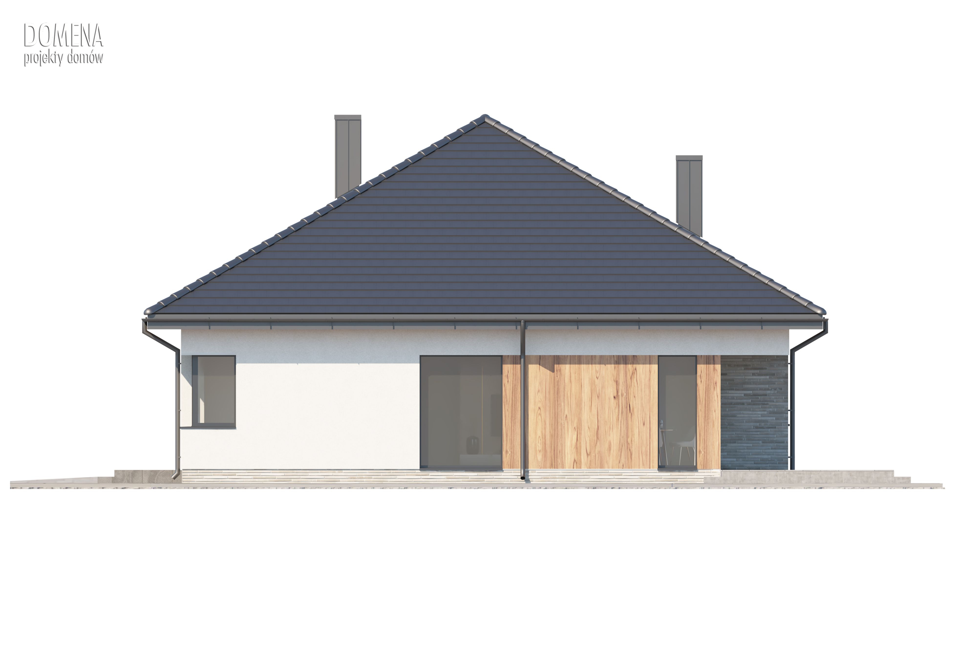 Wizualizacja jest propozycją tego jak dany projekt domu oraz jego otoczenie można zaaranżować. Sposób prowadzenia tarasu, kształt murków i elementy małej architektury typu pergole, donice itp. nie są objęte zakresem projektu. W związku z powyższym na projekcie budowlanym elementy te mogą nie być uwzględnione w projekcie ( patrz pergole ) lub zmieniony może być ich kształt i sposób prowadzenia ( wielkości tarasów, profil murków )