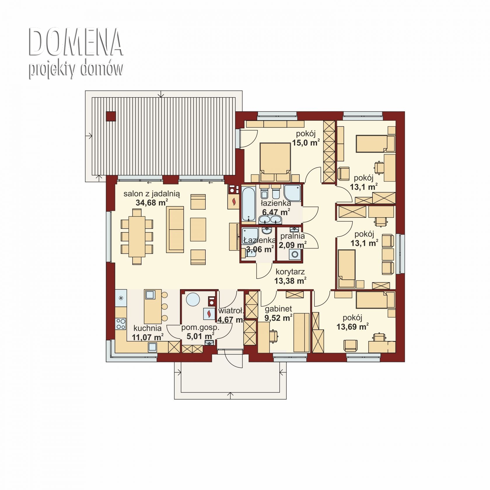 DOMENA 141 C, to projekt parterowy z pięcioma sypialniami.