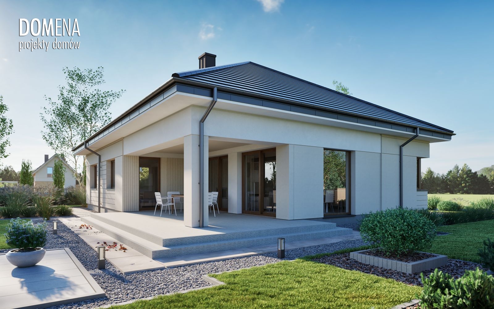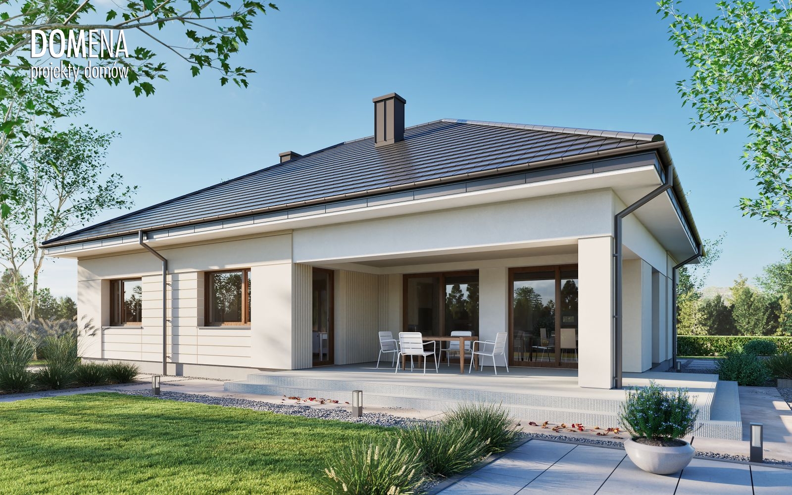 Wizualizacja jest propozycją tego jak dany projekt domu oraz jego otoczenie można zaaranżować. Sposób prowadzenia tarasu, kształt murków i elementy małej architektury typu pergole, donice itp. nie są objęte zakresem projektu. W związku z powyższym na projekcie budowlanym elementy te mogą nie być uwzględnione w projekcie (patrz pergole) lub zmieniony może być ich kształt i sposób prowadzenia (wielkości tarasów, profil murków)