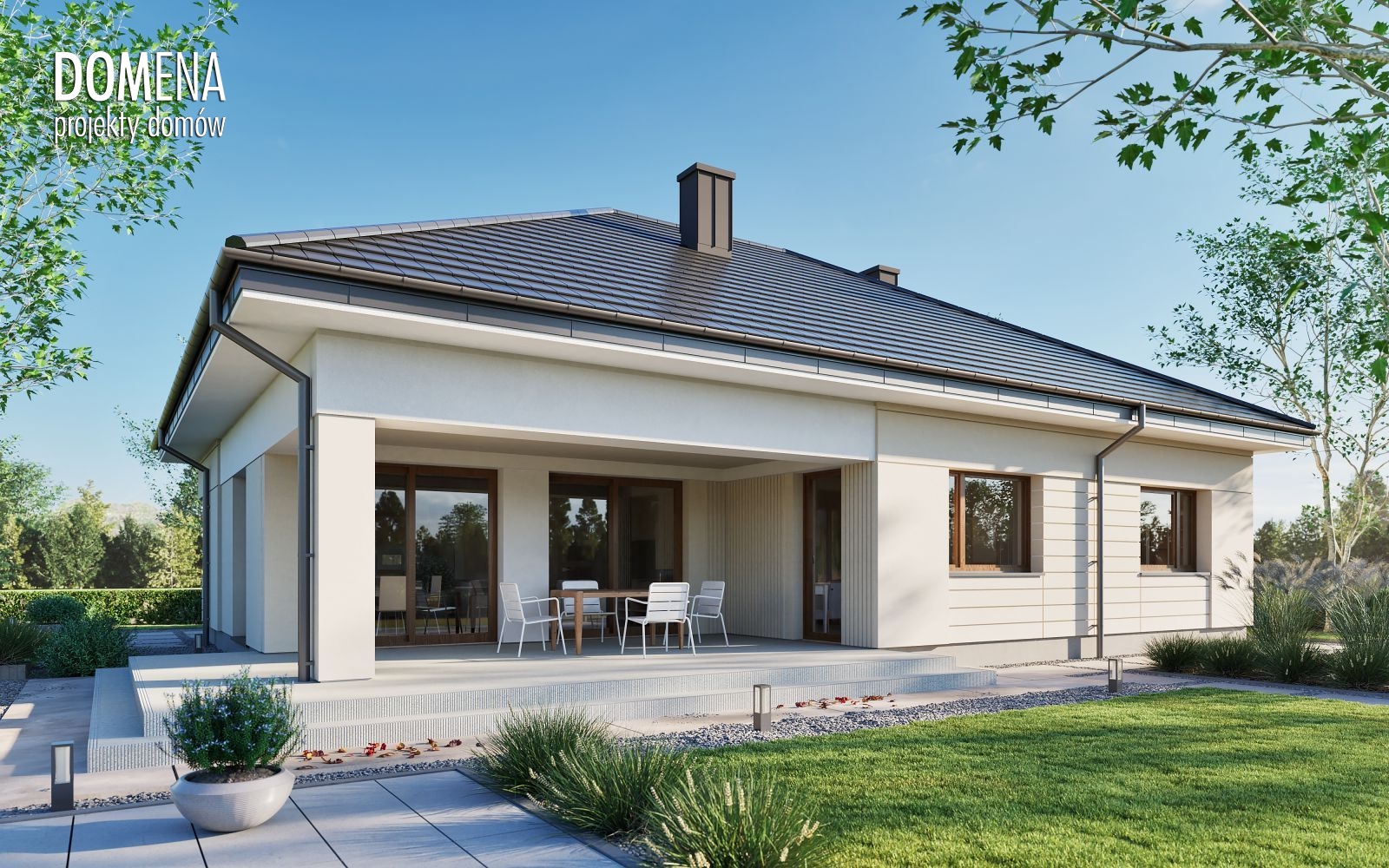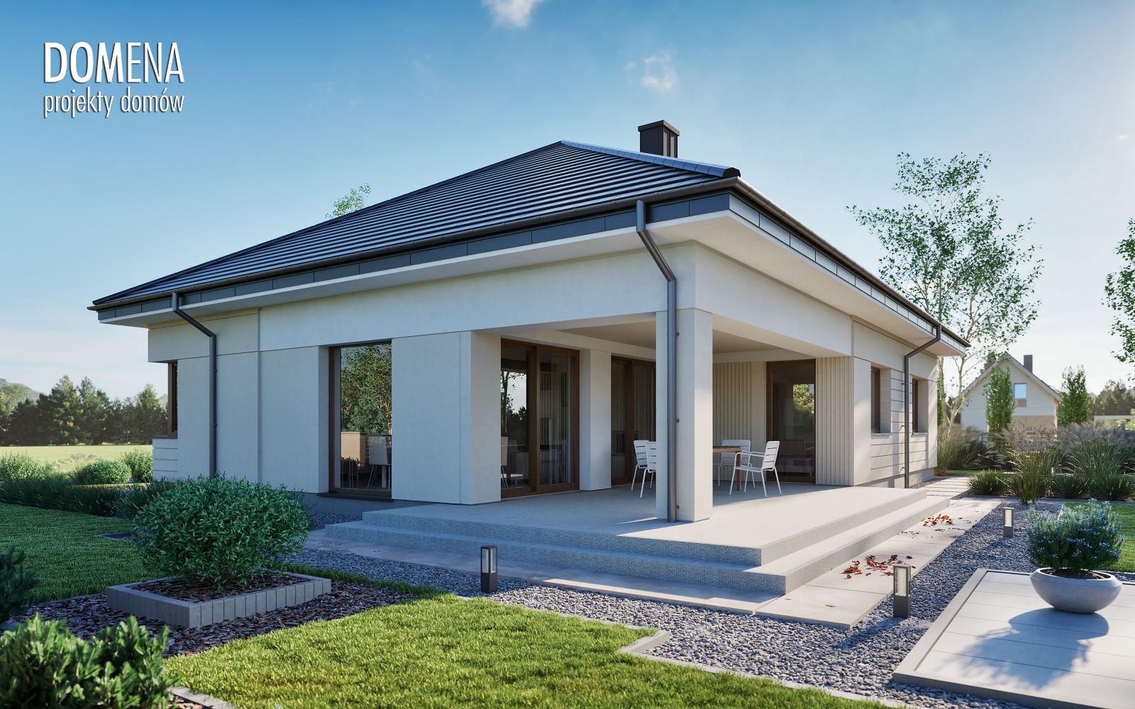 Wizualizacja jest propozycją tego jak dany projekt domu oraz jego otoczenie można zaaranżować. Sposób prowadzenia tarasu, kształt murków i elementy małej architektury typu pergole, donice itp. nie są objęte zakresem projektu. W związku z powyższym na projekcie budowlanym elementy te mogą nie być uwzględnione w projekcie (patrz pergole) lub zmieniony może być ich kształt i sposób prowadzenia (wielkości tarasów, profil murków)