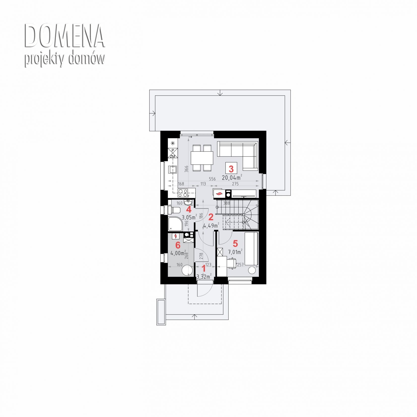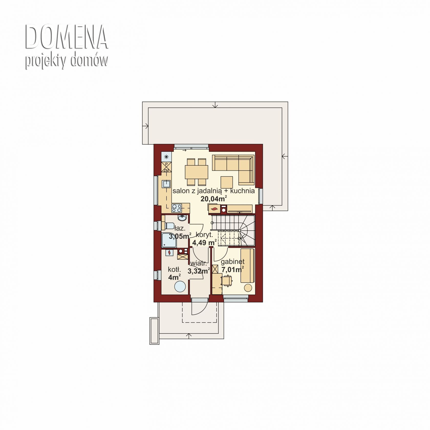 Zamknięta w prostym kształcie DOMENA 208 C została stworzona z myślą o 3 os. rodzinie.