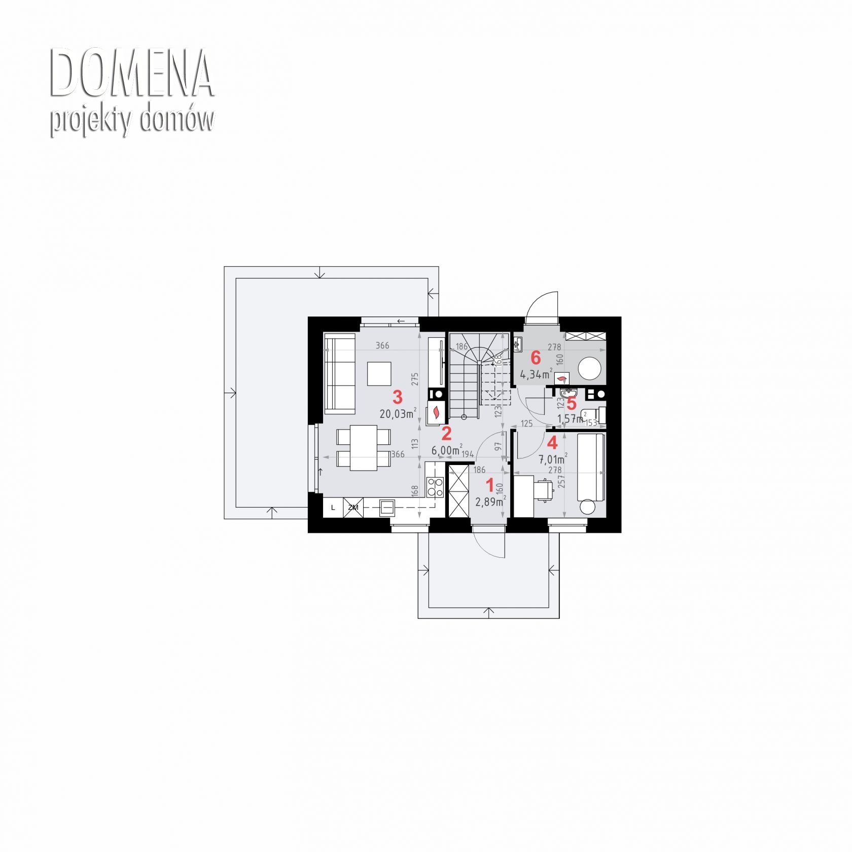 Zamknięta w prostym kształcie DOMENA 208 C2 została stworzona z myślą o 3 os. rodzinie.