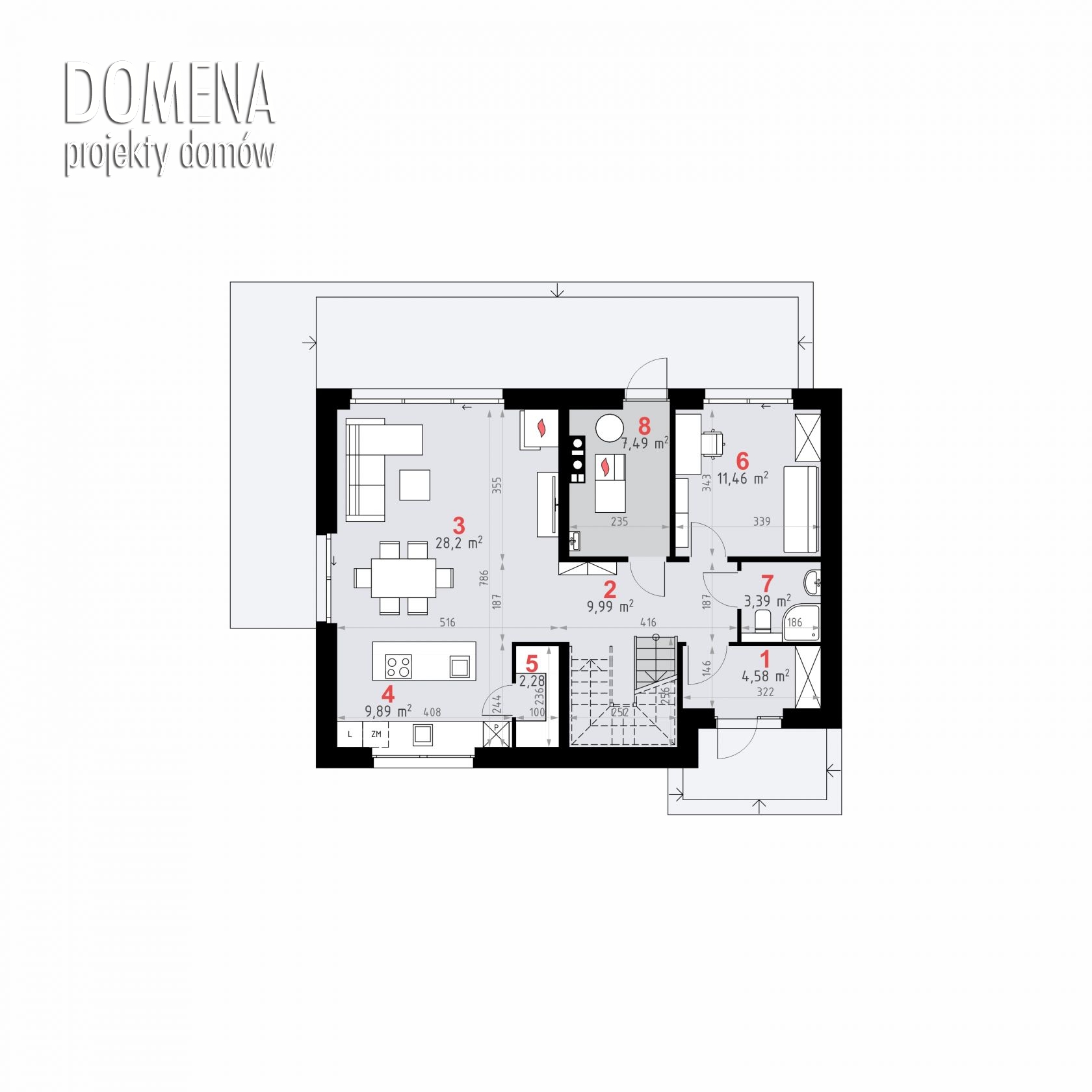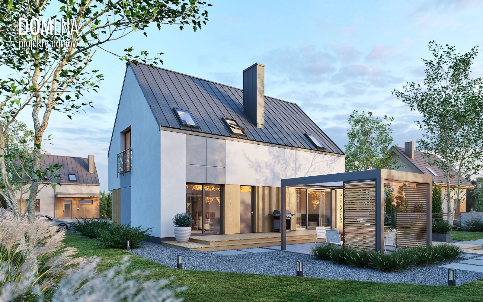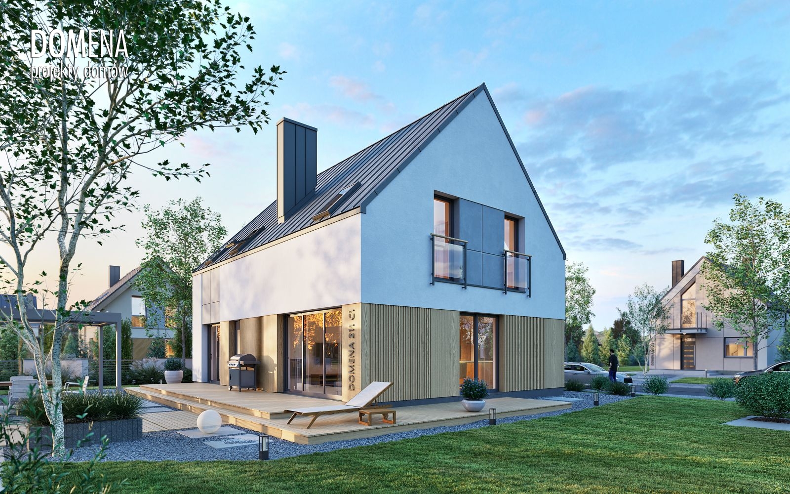 DOMENA 211 C1 to dom dla 4-5 osobowej rodziny, należy do serii nowoczesnych domów z poddaszem. DOMENA 211 C1 to imponująca przestrzeń możliwości.