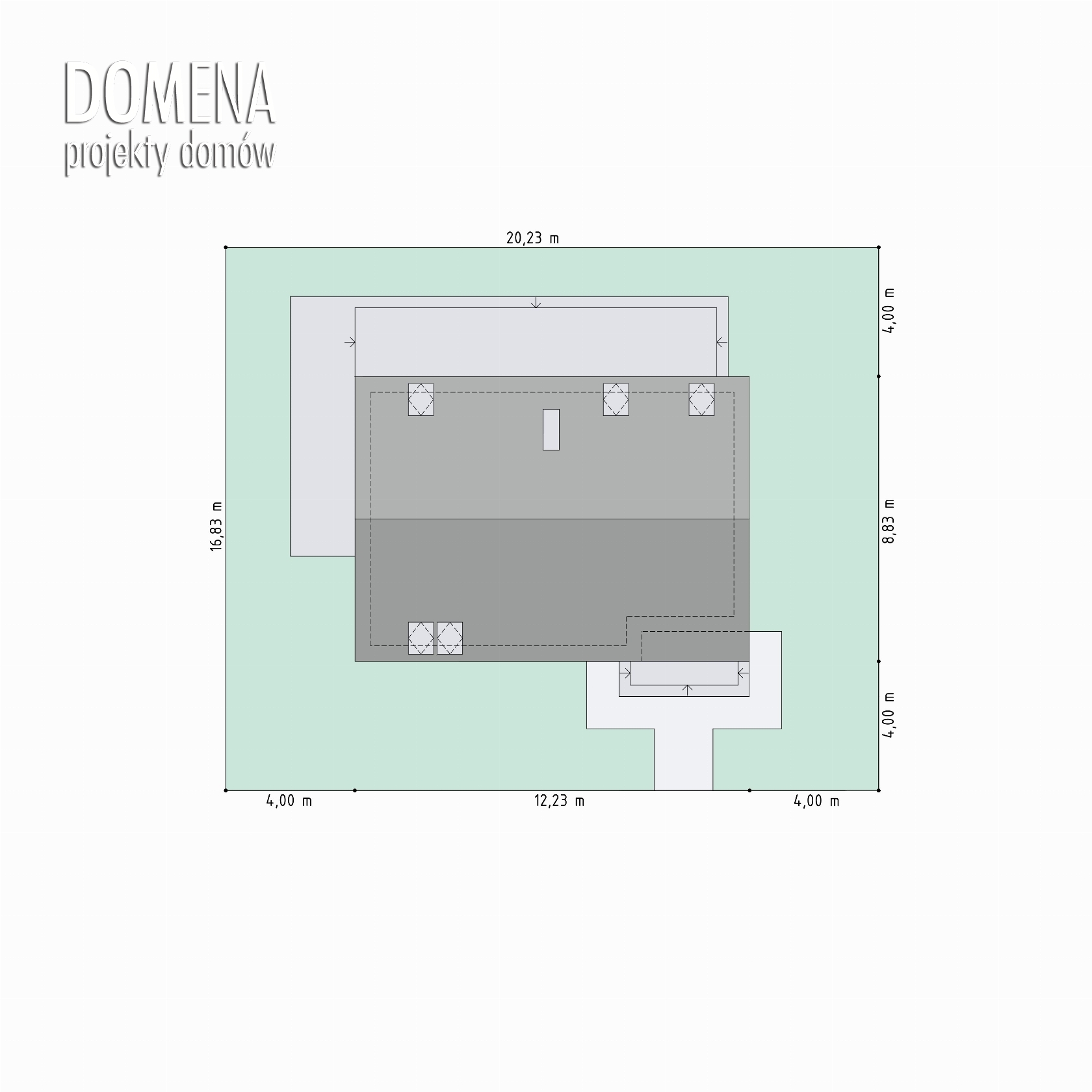 Wizualizacja jest propozycją tego jak dany projekt domu oraz jego otoczenie można zaaranżować. Sposób prowadzenia tarasu, kształt murków i elementy małej architektury typu pergole, donice itp. nie są objęte zakresem projektu. W związku z powyższym na projekcie budowlanym elementy te mogą nie być uwzględnione w projekcie (patrz pergole) lub zmieniony może być ich kształt i sposób prowadzenia (wielkości tarasów, profil murków)