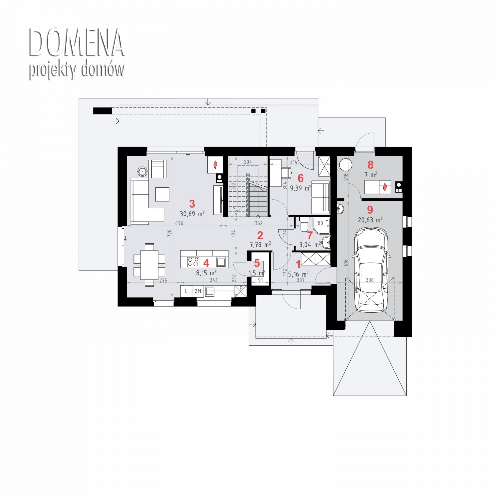 DOMENA 212 A1 to dom dla 4-5 osobowej rodziny, należy do serii nowoczesnych domów z poddaszem oraz garazem