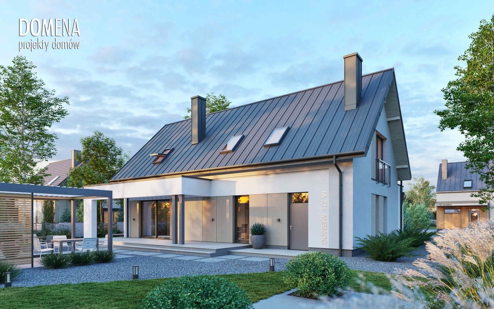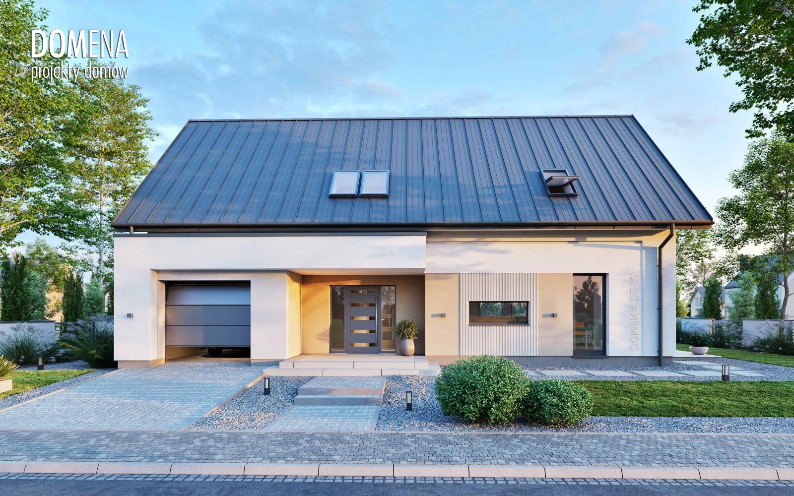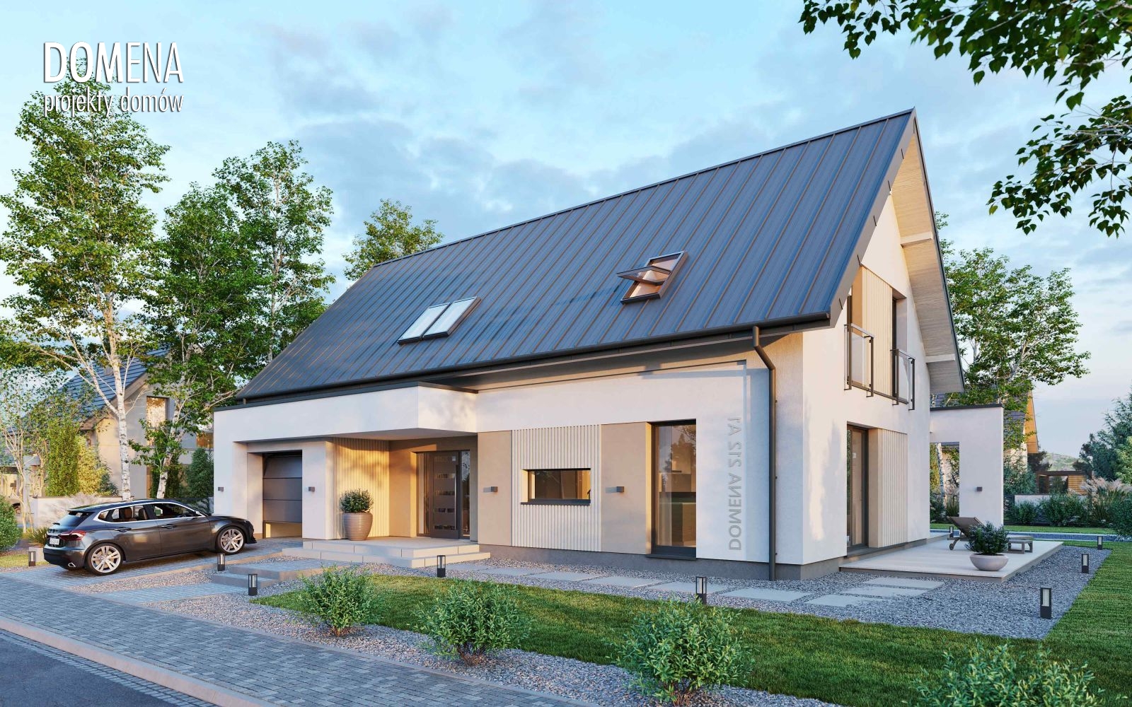 DOMENA 212 A1 to dom dla 4-5 osobowej rodziny, należy do serii nowoczesnych domów z poddaszem oraz garazem