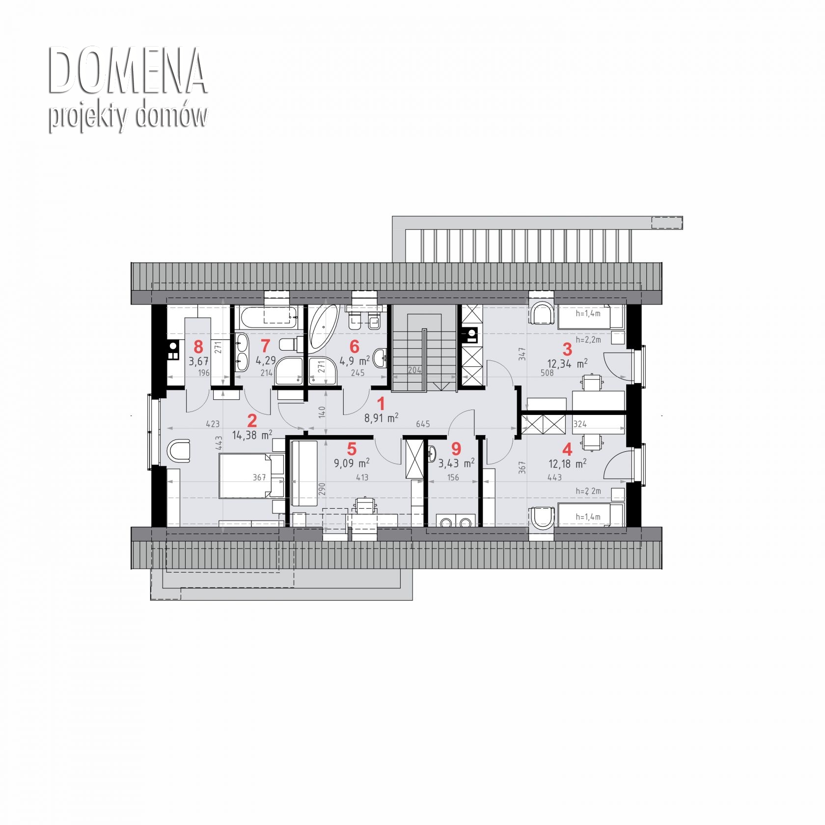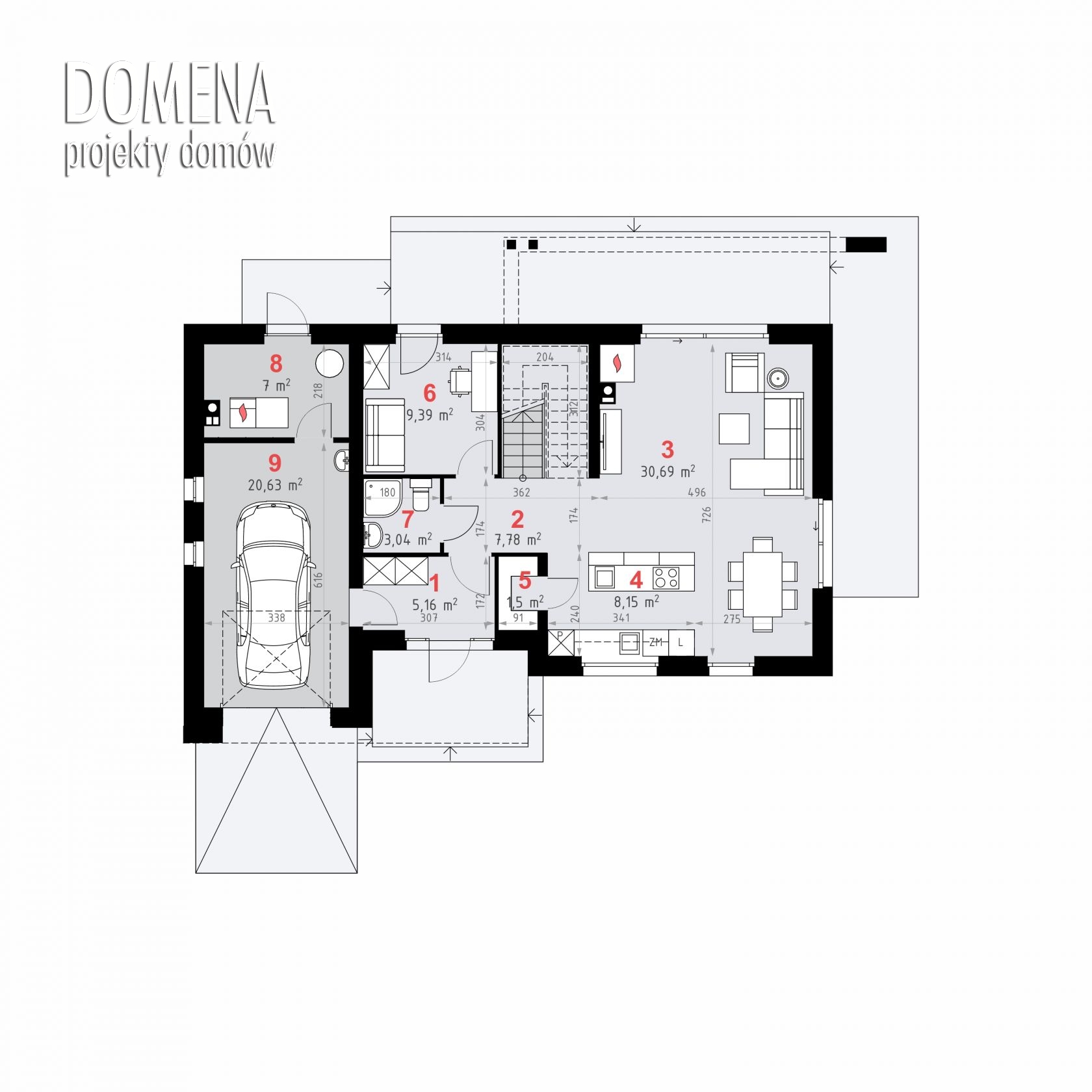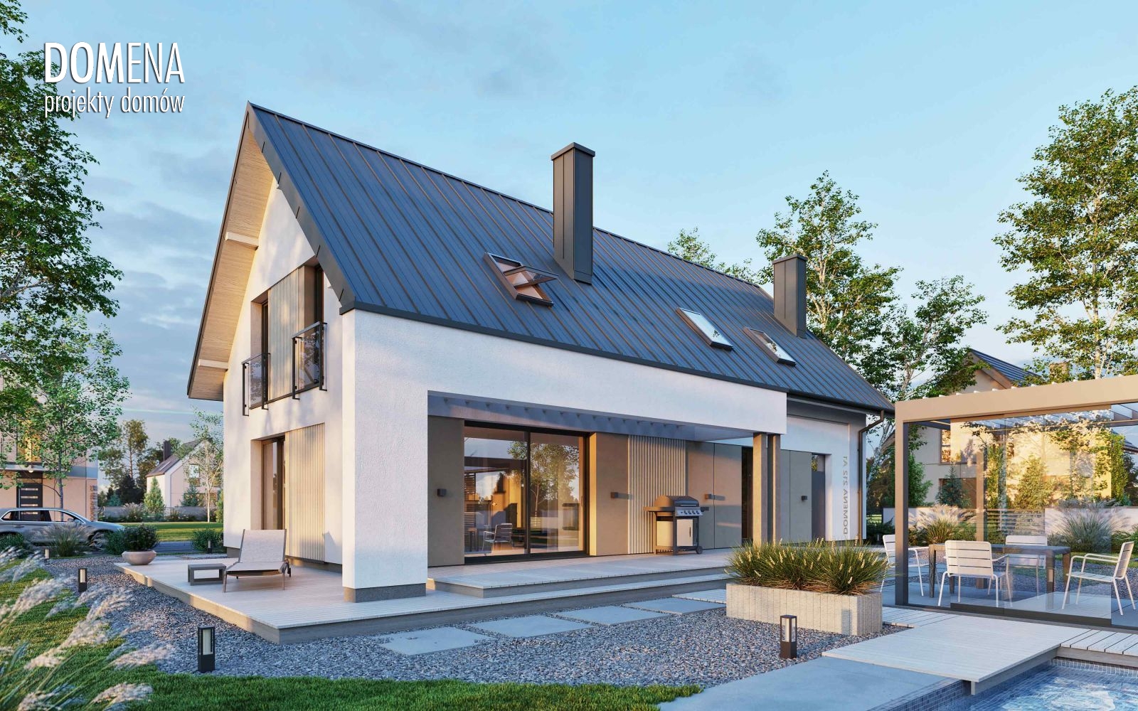 DOMENA 212 A1 to dom dla 4-5 osobowej rodziny, należy do serii nowoczesnych domów z poddaszem oraz garazem
