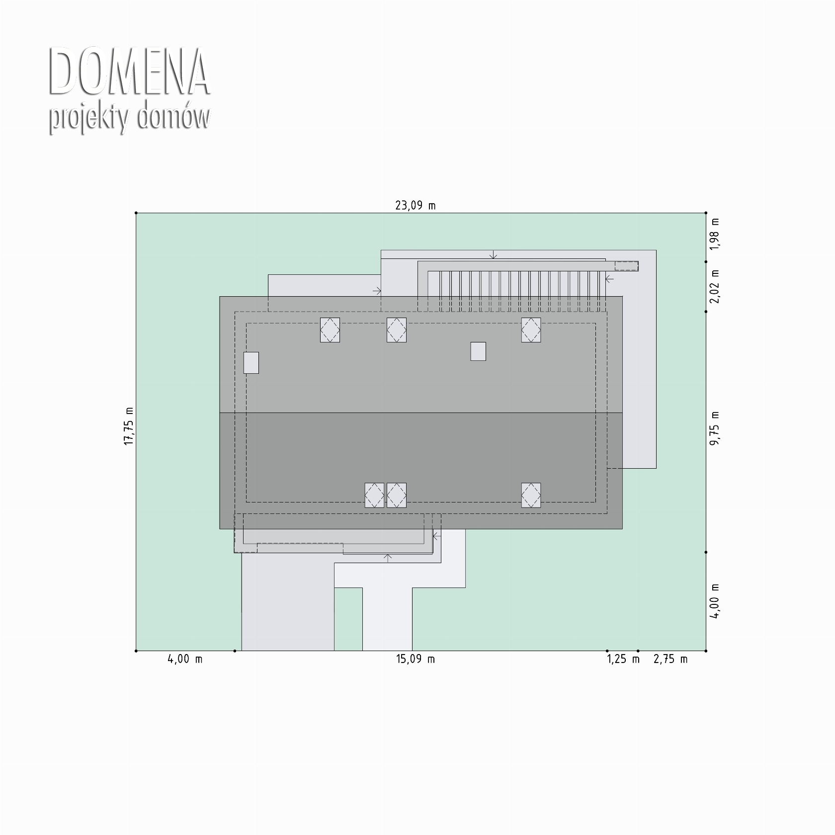 Wizualizacja jest propozycją tego jak dany projekt domu oraz jego otoczenie można zaaranżować. Sposób prowadzenia tarasu, kształt murków i elementy małej architektury typu pergole, donice itp. nie są objęte zakresem projektu. W związku z powyższym na projekcie budowlanym elementy te mogą nie być uwzględnione w projekcie (patrz pergole) lub zmieniony może być ich kształt i sposób prowadzenia (wielkości tarasów, profil murków)