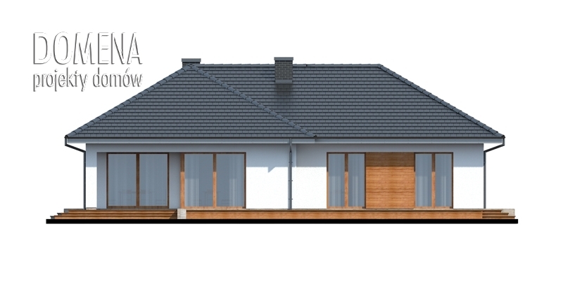 Oryginalny, nowoczesny dom parterowy z poddaszem nieużytkowym. W projekcie zastosowano wyraźny podział na strefę dzienną i nocną. Część dzienną domu stanowią salon, kuchnia oraz jadalnia. Otwarta przestrzeń tych pomieszczeń tworzy integralną całość. Strefa nocna domu to trzy sypialnie oraz obszerna łazienka. Wizytówką projektu są duże przeszklenia, które wpływają dodatnio zarówno na wygląd zewnętrzny jak i wnętrze domu. Przestronny taras dostępny z jadalni, salonu oraz dwóch sypialni, pozwala na relaks na świeżym powietrzu, bez zakłócania spokoju pozostałym domownikom. Niecodzienną propozycją jest garaż z dodatkowym aneksem, w którym pomieścimy poręczne regały. Dodatkowym atutem domku jest późniejsza możliwość adaptacji strychu na pomieszczenia mieszkalne.
