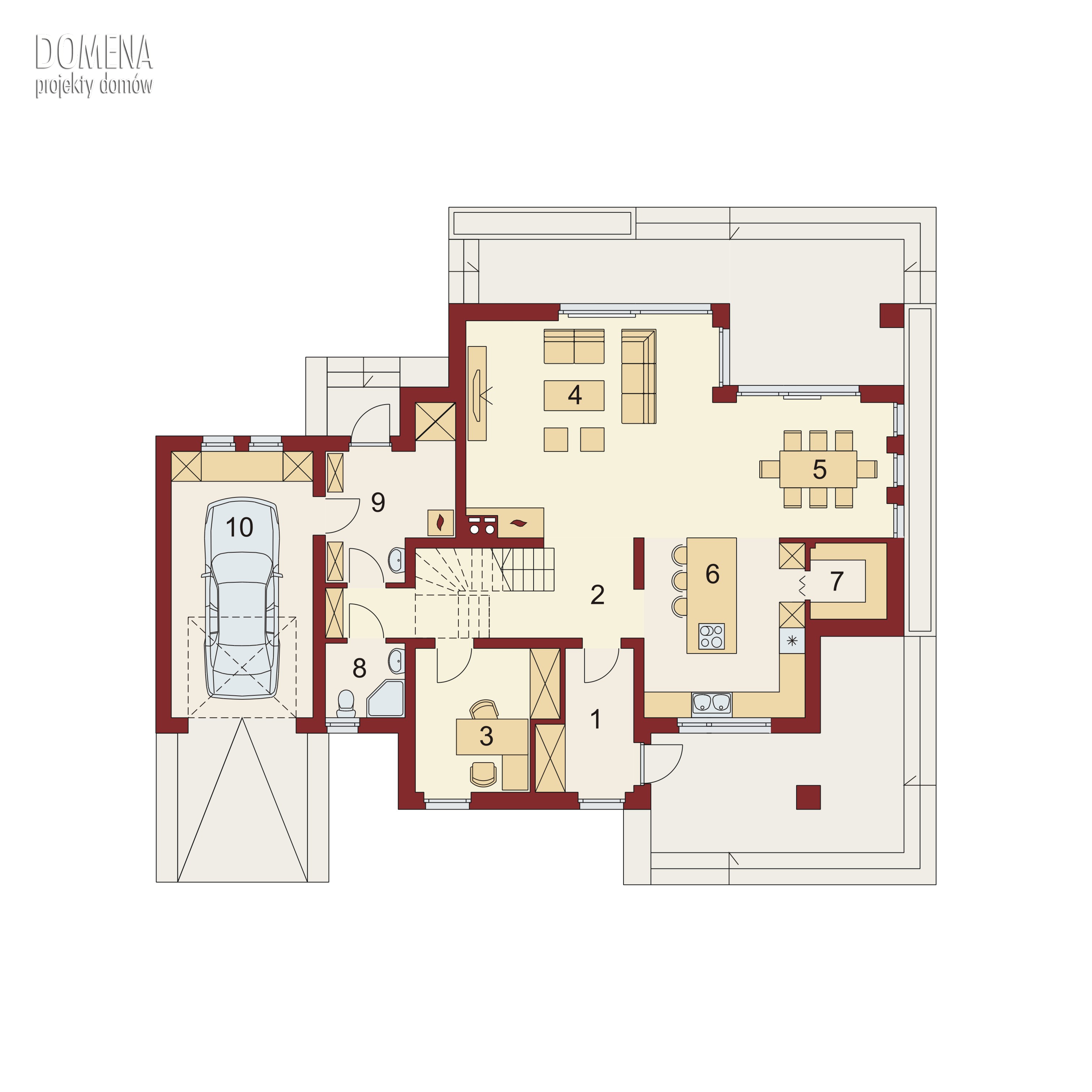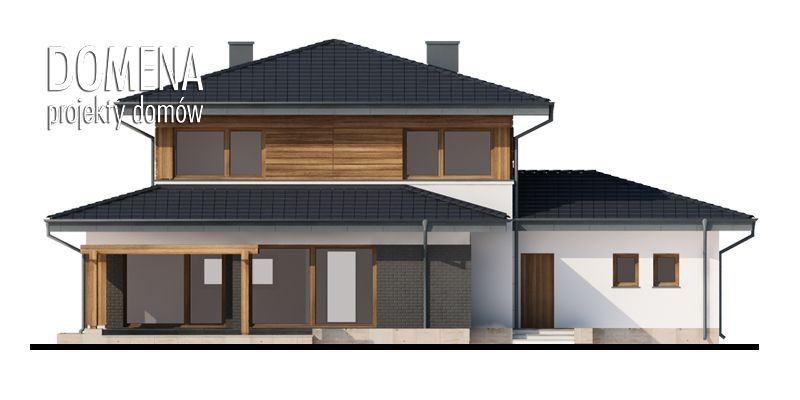 to wygodny, piętrowy dom przeznaczony dla 4-5 osobowej rodziny, o współczesnej bryle, z ciekawą elewacją oraz dużymi przeszkleniami, świetnie wpisujący się zarówno w teren niezamieszkały jak i zabudowany. Największym atutem Farosa jest dający wrażenie otwartej przestrzeni układ wnętrza, z klarownym podziałem funkcji na część dzienną na parterze i część nocną na piętrze. Przestronny i dobrze doświetlony salon z przytulnym kominkiem, płynnie przechodzi w wygodną jadalnię oraz połączoną ze spiżarnią ustawną kuchnię z wyspą. Tę ostatnią, w ramach aranżacji można zamknąć ściankami działowymi. Dodatkowo na parterze znajdziemy zlokalizowany niedaleko wejścia do domu wygodny pokój który można zaaranżować na sypialnię dla gości bądź gabinet, ogólnodostępną łazienkę, ustawny wiatrołap z miejscem na szafę wnękową, jednostanowiskowy garaż oraz pomieszczenie gospodarcze pełniące funkcję kotłowni. Na piętrze znajdują się korytarza wygodna łazienka przez którą można dostać się do pomieszczenia pralni oraz trzy duże pokoje. Największy z nich - ustawna dwuosobowa sypialnia posiada przechodnią garderobą i własny przestronny salon kąpielowym.