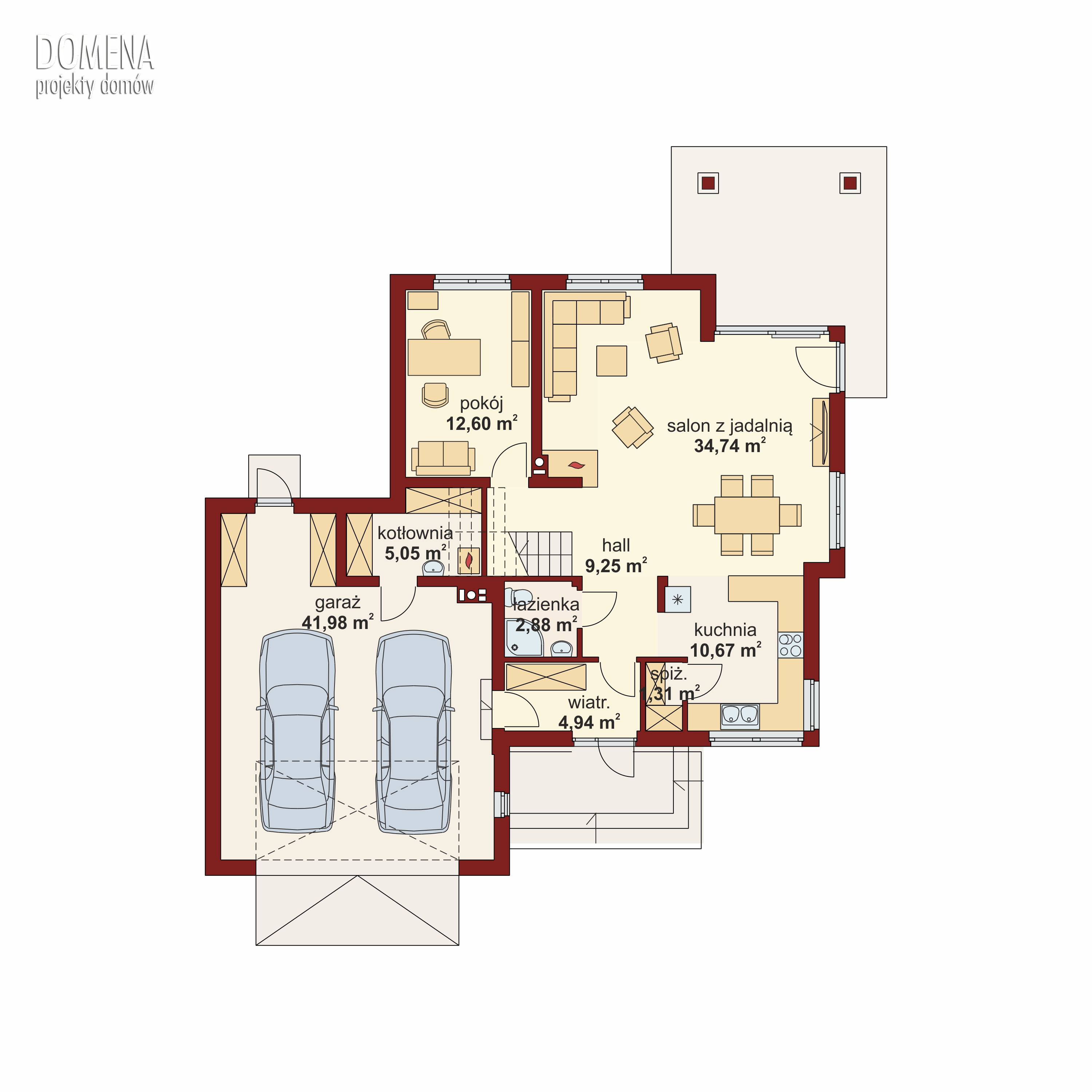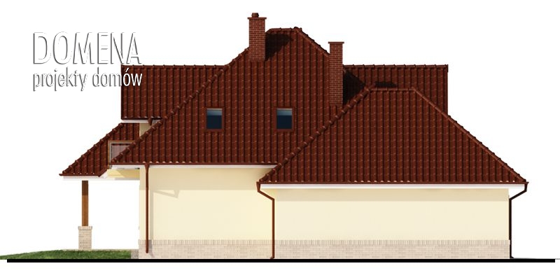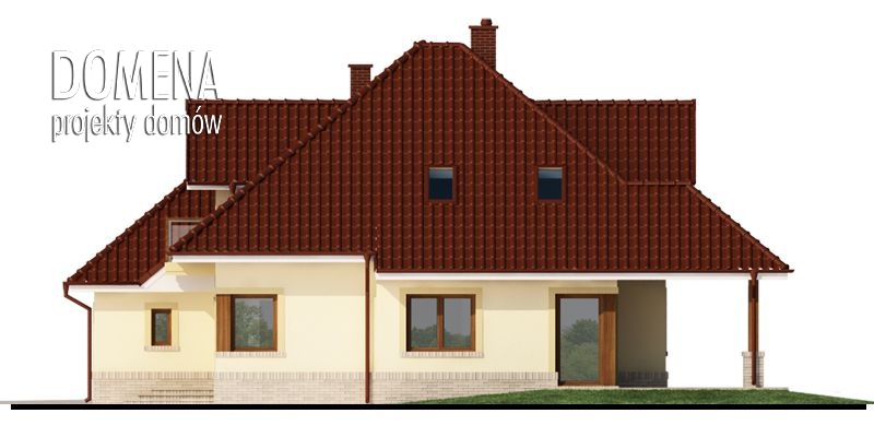 Flawia 2 to dom idealny dla rodziny 4-5 osobowej o klasycznej tradycyjnej bryle. Zaprojektowano go zgodnie z zasadą podziału na strefę dzienną i nocną. Po minięciu wiatrołapu wkracza się do strefy dziennej, gdzie otwiera się przestrzeń z salonem, jadalnią i kuchnią. Salon z kominkiem i wyjściem na taras z dużym zadaszeniem graniczy z częścią jadalnianą, która z kolei bezpośrednio sąsiaduje ze strefą kuchenną. Bardzo dobrze doświetlona kuchnia posiada dostęp do spiżarni. Może ona także funkcjonować jako zamknięta dzięki dostawieniu ścianek działowych. Jeśli chcemy powiększyć kuchnię, bądź zyskać dodatkowe miejsce na szafę w wiatrołapie, możemy to osiągnąć kosztem spiżarni. Na parterze znajduje się także dodatkowy pokój, łazienka z natryskiem oraz garaż i pomieszczenie gospodarcze. Bezpośrednio z wiatrołapu wchodzi się do dwustanowiskowego garażu, z którego z kolei zaaranżowano wyjście do ogrodu oraz dostęp do pomieszczenia gospodarczego. Jest możliwość powiększenia tego ostatniego prawie dwukrotnie, wykorzystując przestrzeń przy drzwiach wychodzących na ogród. Poddasze to w całości strefa nocna. Składa się z trzech sypialni, każda z wyjściem na balkon, a jedna dodatkowo z indywidualną łazienką i garderobą oraz z łazienki.