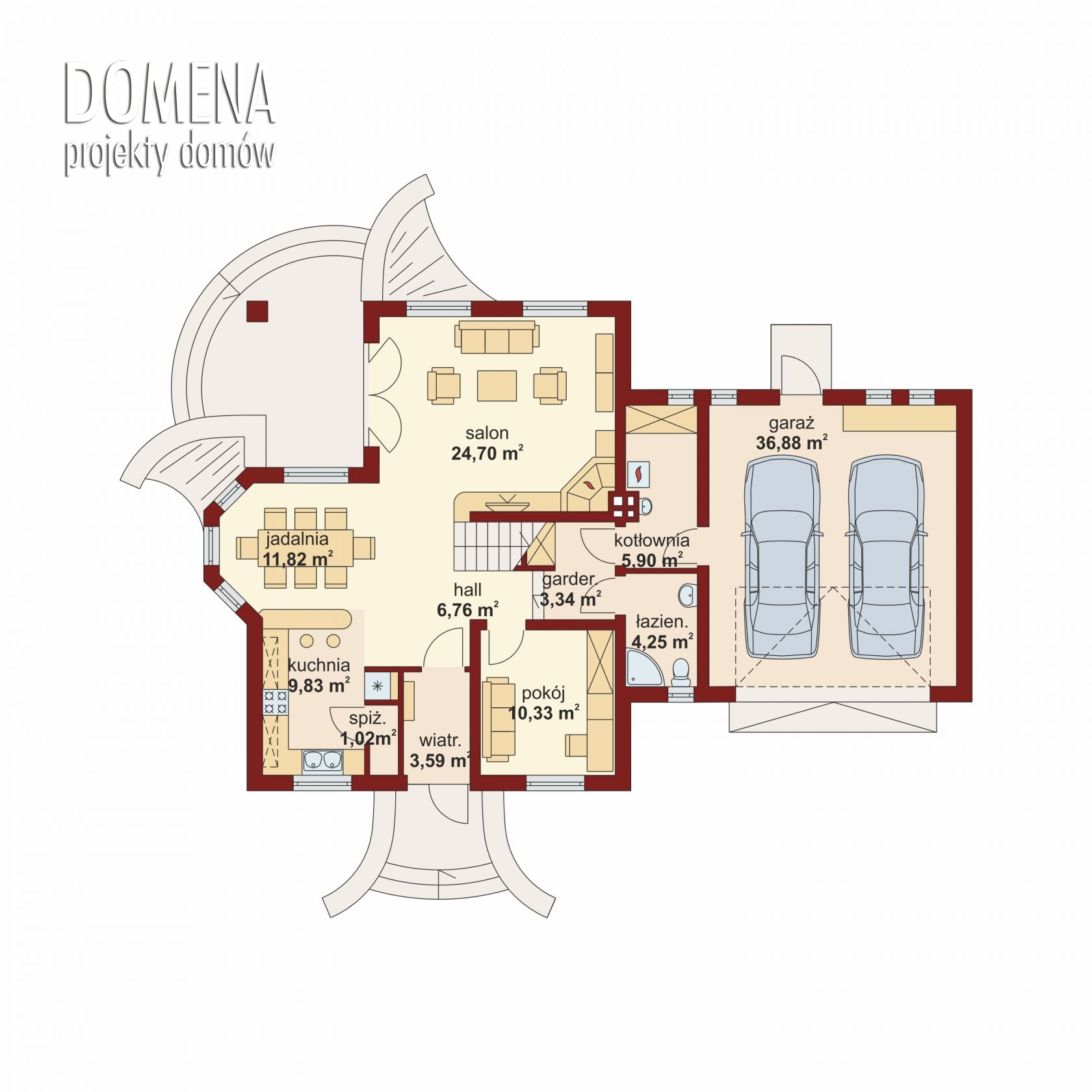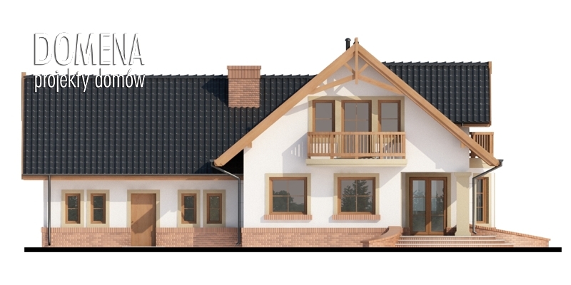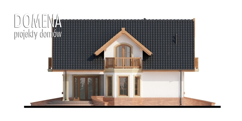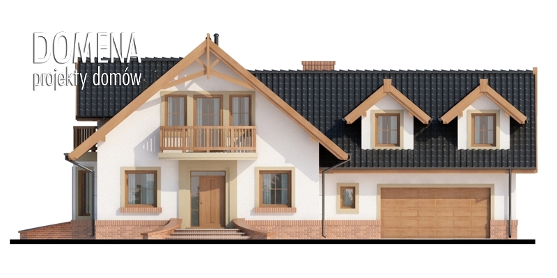 Dom z poddaszem użytkowym, przeznaczony dla 4-5-osobowej rodziny. Na parterze znajduje się przestronny pokój dzienny otwarty na jadalnię połączoną z kuchnią. Rozwiązanie funkcjonalne pozwala na wydzielenie kuchni. Na parterze znajduje się także spiżarnia, łazienka oraz gabinet, a także pomieszczenie gospodarcze, przez które można się dostać do garażu. Na poddaszu znajdują się trzy sypialnie, łazienka oraz garderoba. Nad garażem znajduje się strych nieużytkowy dostępny bezpośrednio z klatki schodowej, który można zaadaptować na dodatkowe pomieszczenie gospodarcze lub pokój o powierzchni użytkowej prawie 20 m2. W ramach adaptacji istnieje możliwość wydzielenia z powierzchni strychowej pomieszczenia, które można przeznaczyć na pralnię i suszarnię oraz dodatkowego korytarza z miejscem na szafę, z którego można będzie się dostać bezpośrednio do pomieszczenia zaadaptowanego np na pokój.