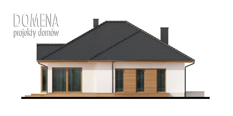 Nowoczesna bryła, dobre nasłonecznienie, funkcjonalne rozwiązania – to cechy charakterystyczne Heraklesa. Czytelny podział domu na strefy: dzienną i nocną. Część dzienna to duża, bardzo jasna otwarta przestrzeń z bezpośrednim wyjściem na taras i centralnie położonym kominkiem. Interesującym rozwiązaniem jest przeszklony wykusz, w który idealnie wpisuje się stół jadalni, stanowiącej łącznik między salonem a obszerną kuchnią. Ta ostatnia, po wydzieleniu jej ściankami działowymi, może również funkcjonować jako kuchnia zamknięta. Ma ona także dostęp do poręcznej spiżarki. Na strefę nocną składa się sypialnia rodziców z indywidualną garderobą i łazienką oraz możliwością wyjścia na taras, a także dwa pokoje dzieci z usytuowaną pomiędzy nimi dużą łazienką. Jeden z pokoi, z racji swojej bliskości do strefy wejściowej, może być wykorzystany na np. gabinet. Nisza w hallu może być miejscem na pakowną szafę wnękową, bądź schody prowadzące na poddasze, które może być zaadaptowane na użytkowe. Dzięki niemu możemy skutecznie powiększyć dom np. o dodatkową sypialnię, czy pokój hobby.