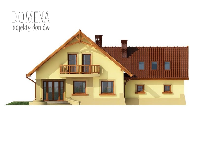 Dom z poddaszem użytkowym, przeznaczony dla 4-5-osobowej rodziny. Na parterze znajduje się przestronny pokój dzienny otwarty na jadalnię połączoną z kuchnią. Rozwiązanie funkcjonalne pozwala na wydzielenie ww. pomieszczeń. Wyjście na taras z podcieniem jest możliwe zarówno z jadalni jak i z pokoju dziennego. Na parterze znajduje się spiżarnia, łazienka oraz dodatkowy pokój, a także pomieszczenie gospodarcze, przez które można się dostać do przestronnego garażu, dającego możliwość zabudowania dwóch ścian szafami. Na poddaszu znajdują się trzy sypialnie, łazienka oraz garderoba. Hol na poddaszu posiada wnękę przeznaczoną na szafę. Nad garażem znajduje się dodatkowa łazienka, strych mogący spełniac rolę suszarni oraz pokój. W ramach adaptacji istnieje mozliwość powiększenia kuchni z jadalnią i tarasu w podcieniu oraz powiększenie i lokalizacja spiżarni bezpośrednio przy kuchni, kosztem dodatkowego pokoju na parterze. Dzięki prostym rozwiązaniom konstrukcyjnym i nieskomplikowanej bryle jest on niedrogi w budowie i eksploatacji. Projekt dostępny w lustrzanym odbiciu.