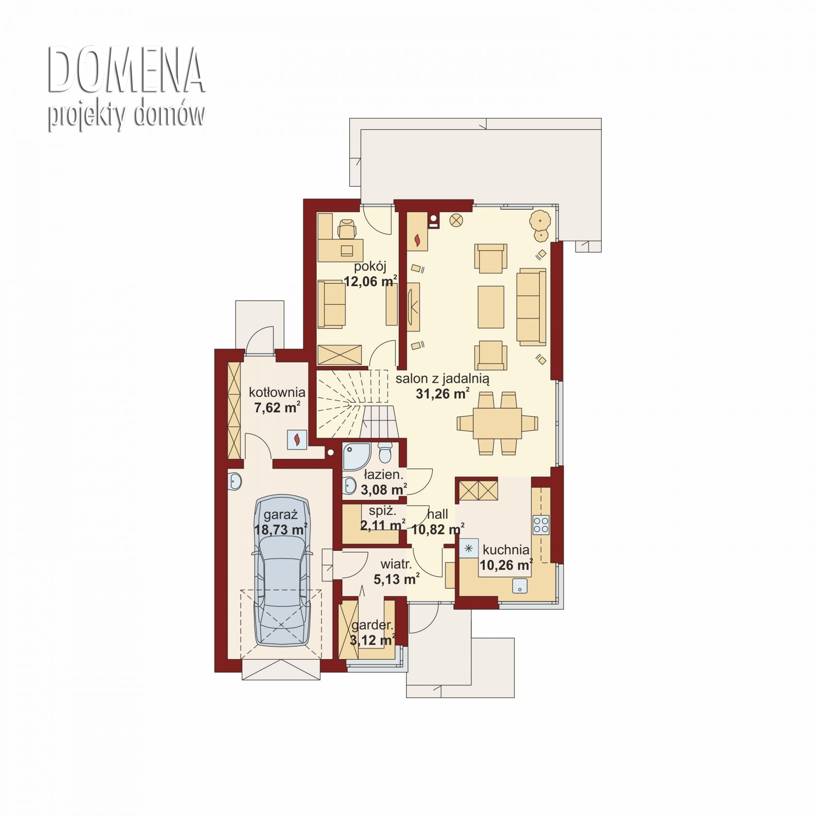 3. odsunięciu nieco garażu od kotłowni (między tymi pomieszczeniami powstałby wtedy ganek, przez który wchodziłoby się do domu)