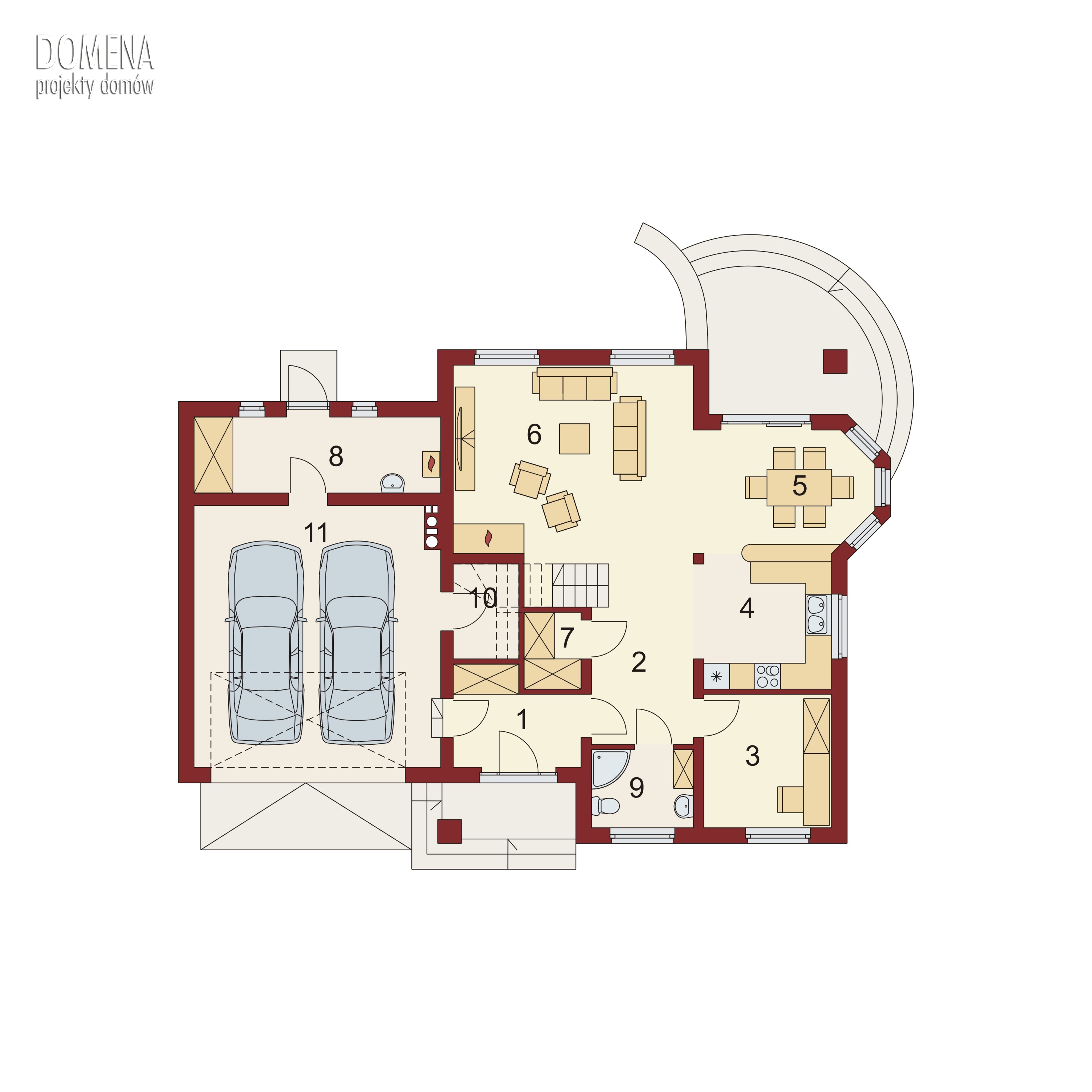 Dom w klasycznym stylu dla 4-5 osobowej rodziny dzięki prostej bryle i dwuspadowemu dachowi ekonomiczny i łatwy w budowie. Nieograniczoną ściankami przestrzeń salonu urozmaicają przeszklony wykusz, w którym zaprojektowano jadalnie, oraz otwarta klatka schodowa, gdzie w zależności od rodzaju materiałów zastosowanych do wykończenia schodów można kreować zróżnicowane stylistycznie wnętrza. Dodatkowy pokój na parterze otwiera możliwość na budowę etapami( najpierw parter do zamieszkania, a później piętro), by finalnie stać się pokojem gościnnym ,lub gabinetem doskonale umiejscowionym blisko wejścia i łazienki. Poddasze domu mieści trzy sypialnie w tym jedną z garderobą oraz sporej wielkości łazienkę . W ramach adaptacji strych można przekształcić w dodatkowy pokój i wykorzystać go zgodnie z zapotrzebowaniami rodziny (sypialnia, bawialnia dla dzieci, pokój hobby itd.).