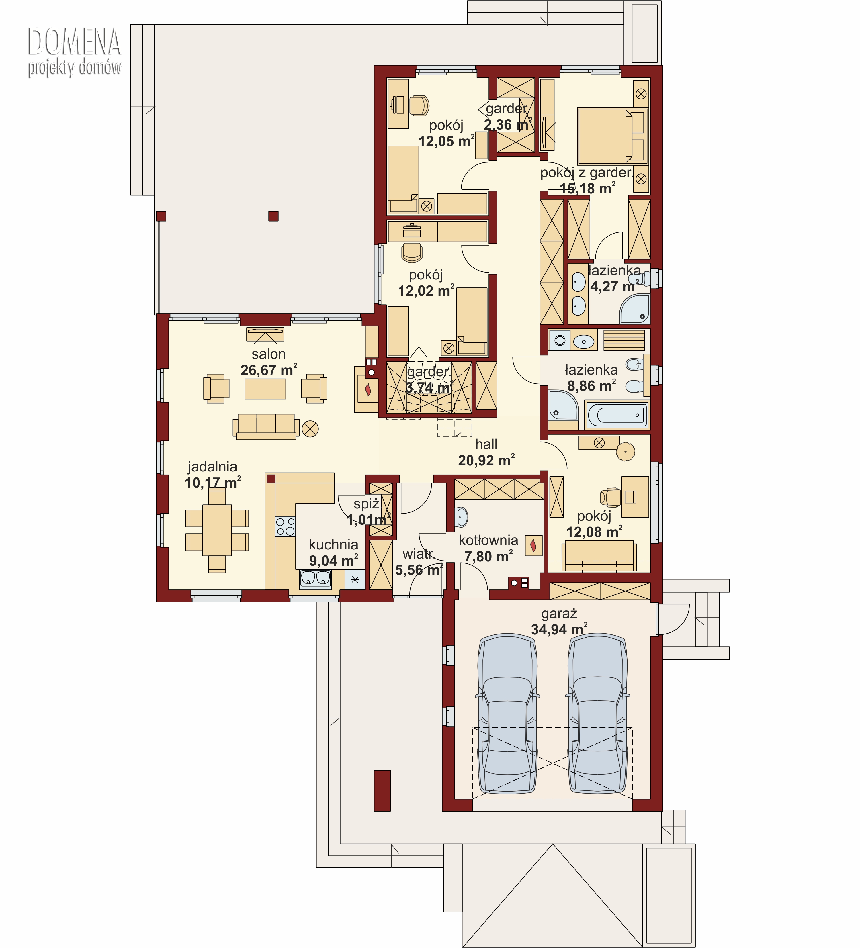 Bardzo fajny projekt. Szkoda tylko, że garaż jest na co najwyżej jeden samochód i rower. Na dwa samochodu typu np. sedan + sedan, albo sedan + suv garaże powinny mieć około 40m2.