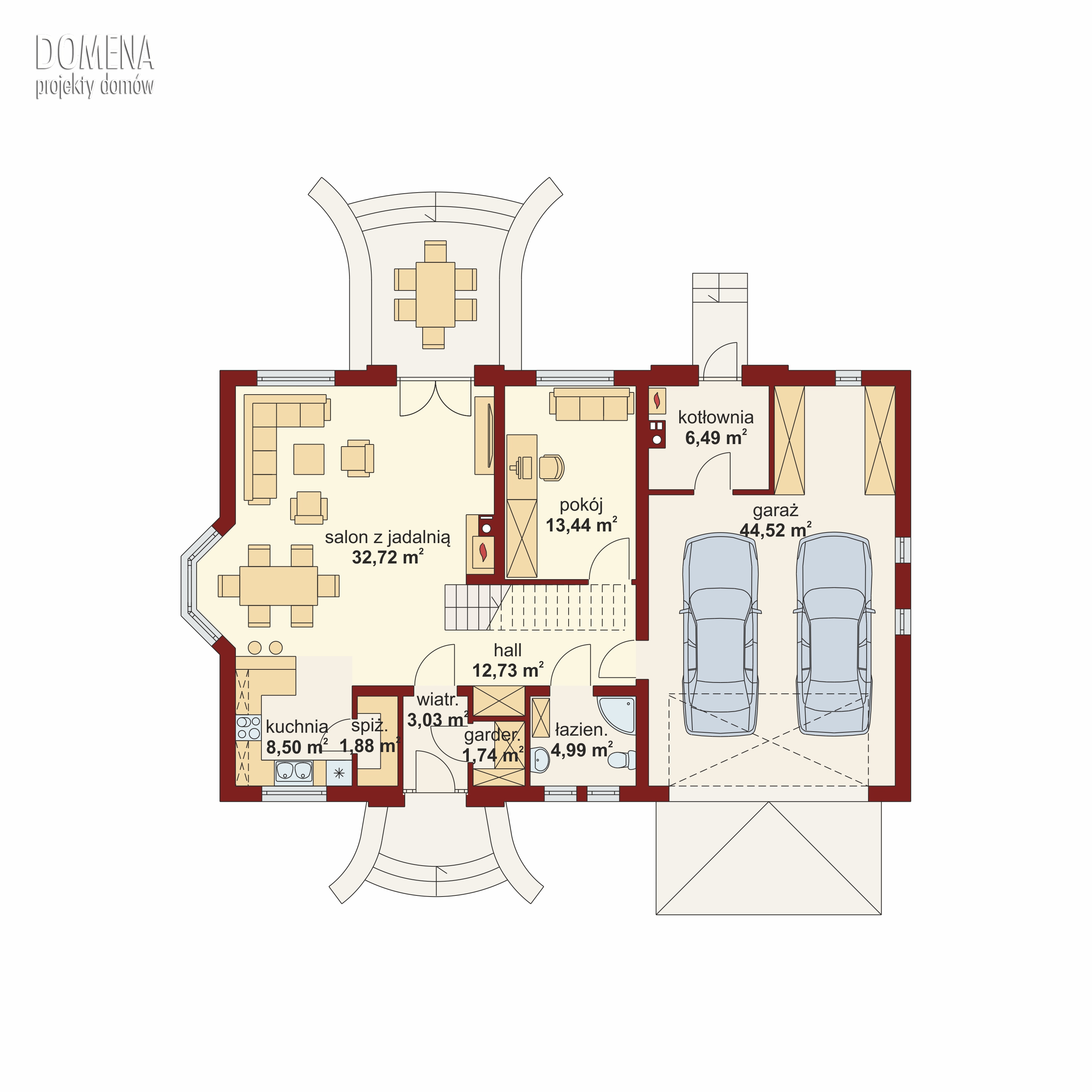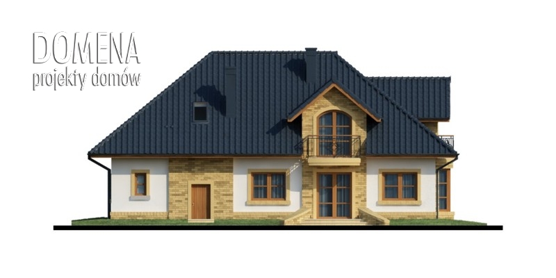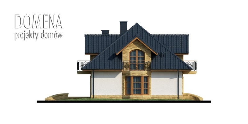 Kalamis 2 to duży, komfortowy dom przeznaczony dla 4/5 – osobowej rodziny. Zaprojektowany został w stylistyce tradycyjnej. Po minięciu zadaszonej strefy wejściowej oraz wiatrołapu z otwartą na niego praktyczną garderobą, zarysowuje się przestronny salon oraz usytuowany na osi wejścia taras. Salon z kominkiem, jadalnia, ciekawie usytuowana w przeszklonym wykuszu i kuchnia stanowią jednorodną przestrzeń – salon płynnie przechodzi w jadalnię, która następnie łączy się z kuchnią. Kuchnia z dostępem do spiżarni może za pomocą ścianki działowej być przekształcona w zamkniętą. Cała strefa wejściowa, w zależności od upodobań, może ulec transformacjom. Można powiększyć wiatrołap kosztem spiżarni bądź garderoby, rozbudować kuchnię likwidując spiżarnię, natomiast z garderoby stworzyć dostępne od strony wiatrołapu bądź korytarza np. pomieszczenie gospodarcze. Na parterze mieści się również dodatkowy pokój, mogący pełnić także funkcję gabinetu czy pokoju gościnnego, oraz położona naprzeciwko niego łazienka. Całość strefy nocnej usytuowana jest na poddaszu. Składa się z trzech pokoi, przy czym każdy z nich posiada balkon, dwa zaopatrzone są w indywidualne garderoby, jeden natomiast dodatkowo w prywatną łazienkę. Poddasze, dzięki zastosowaniu lekkich ścianek działowych można przekształcać praktycznie w dowolny sposób –powiększać lub zmieniać kształt pokoi likwidując garderoby czy przesuwając ścianki działowe.