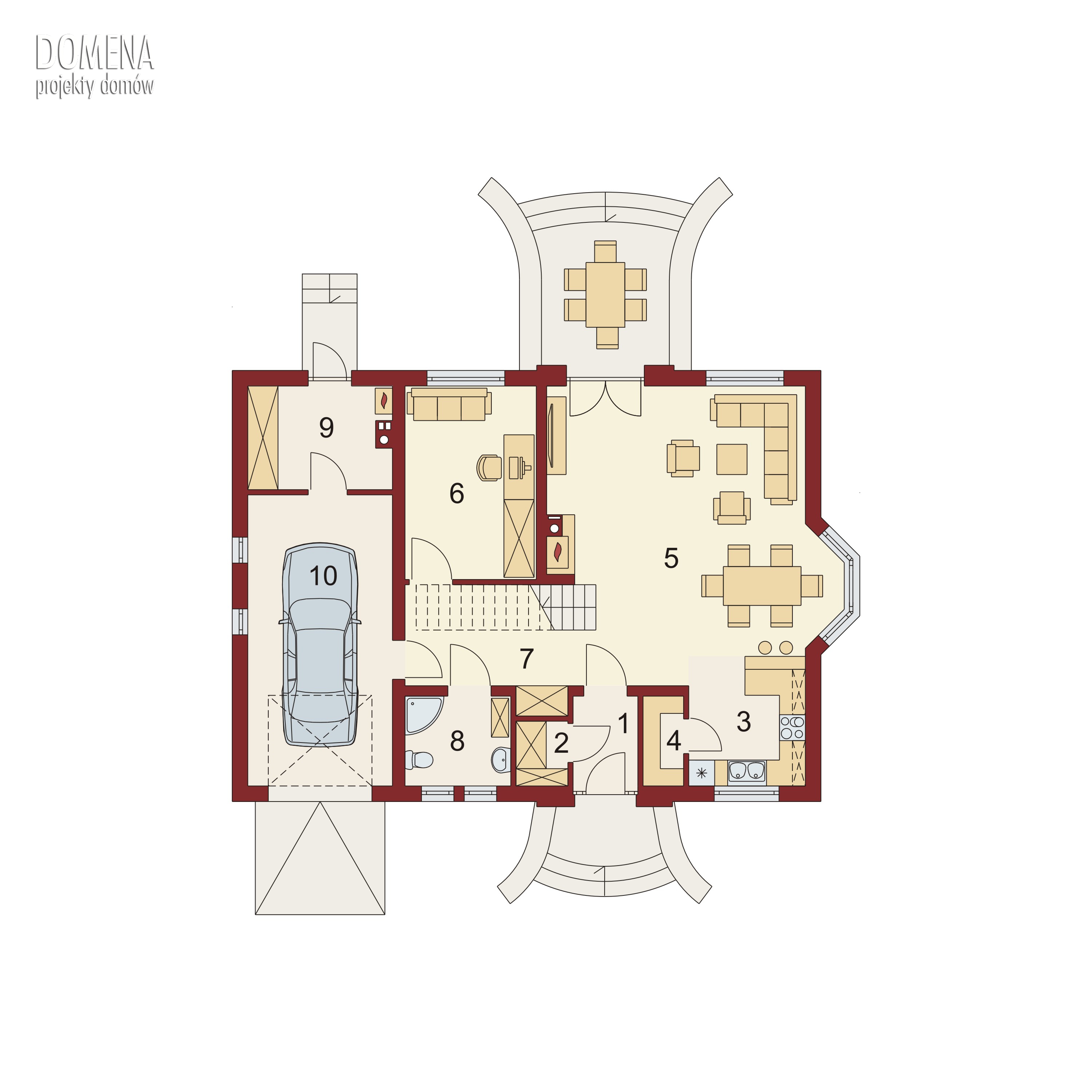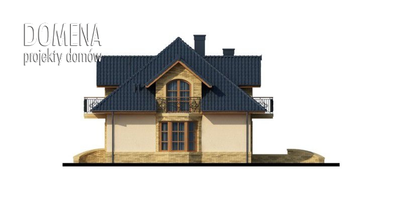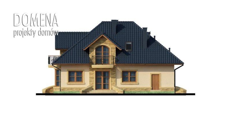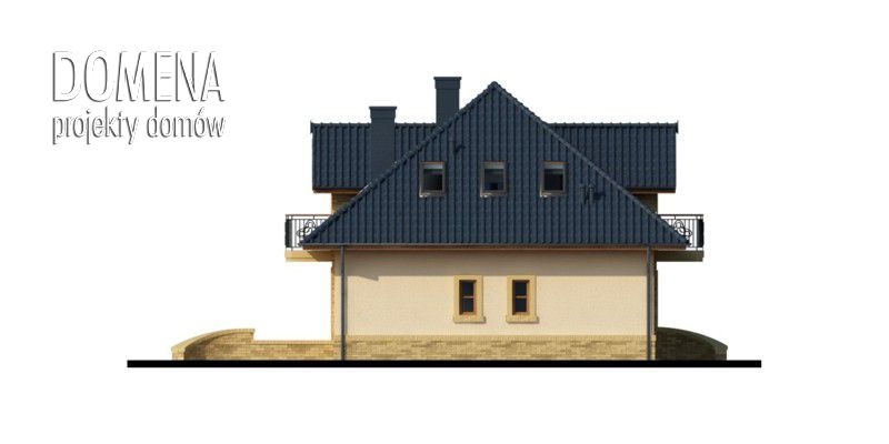 Kalamis to duży, komfortowy dom przeznaczony dla 4/5 – osobowej rodziny. Zaprojektowany został w stylistyce tradycyjnej. Po minięciu zadaszonej strefy wejściowej oraz wiatrołapu z otwartą na niego praktyczną garderobą, zarysowuje się przestronny salon oraz usytuowany na osi wejścia taras. Salon z kominkiem, jadalnia, ciekawie usytuowana w przeszklonym wykuszu i kuchnia stanowią jednorodną przestrzeń – salon płynnie przechodzi w jadalnię, która następnie łączy się z kuchnią. Kuchnia z dostępem do spiżarni może za pomocą ścianki działowej być przekształcona w zamkniętą. Cała strefa wejściowa, w zależności od upodobań, może ulec transformacjom. Można powiększyć wiatrołap kosztem spiżarni bądź garderoby, rozbudować kuchnię likwidując spiżarnię, natomiast z garderoby stworzyć dostępne od strony wiatrołapu bądź korytarza np. pomieszczenie gospodarcze. Na parterze mieści się również dodatkowy pokój, mogący pełnić także funkcję gabinetu czy pokoju gościnnego, oraz położona naprzeciwko niego łazienka. Całość strefy nocnej usytuowana jest na poddaszu. Składa się z trzech pokoi, przy czym każdy z nich posiada balkon, dwa zaopatrzone są w indywidualne garderoby, jeden natomiast dodatkowo w prywatną łazienkę. Poddasze, dzięki zastosowaniu lekkich ścianek działowych można przekształcać praktycznie w dowolny sposób –powiększać lub zmieniać kształt pokoi likwidując garderoby czy przesuwając ścianki działowe.