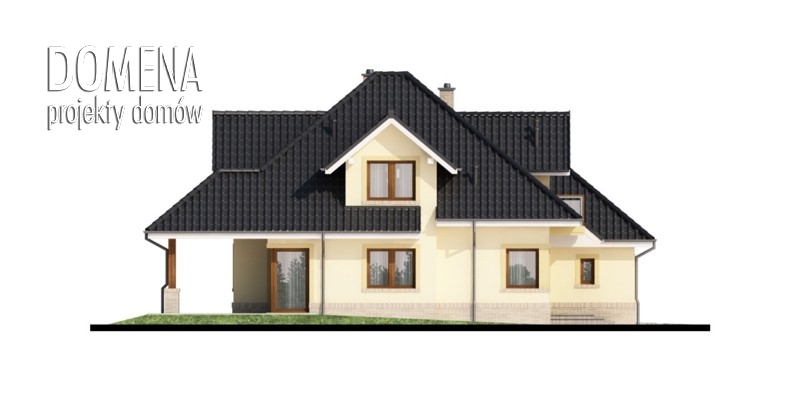 Przestronny dom jednorodzinny z poddaszem użytkowym. Przeznaczony dla 4-5 osobowej rodziny. Drewniany taras nadaje uroku i ciepła podczas wspólnego biesiadowania. Część parterowa tego domu jest bardzo przestronna, co umożliwia swobodne przemieszczanie się, nawet podczas odwiedzin gości. Dodatkowym atutem tego domu jest funkcjonalnie usytuowana jadalnia, która pozwala na podziwianie piękna ogrodu podczas rodzinnych posiłków. Pokój usytuowany za sąsiadującą ścianą salonu, dzięki dobremu zagospodarowaniu, może spełnić zarówno funkcję gabinetu jak i pokoju gościnnego. Godny uwagi jest także garaż, który w połączeniu z wiatrołapem pozwoli na przejście do części mieszkalnej bez konieczności wychodzenia na zewnątrz. Poddasze to zaciszne miejsce, na którym zaprojektowana została jasna łazienka oraz 3 niezależne pokoje w tym 2 z prywatną garderobą i balkonem.
