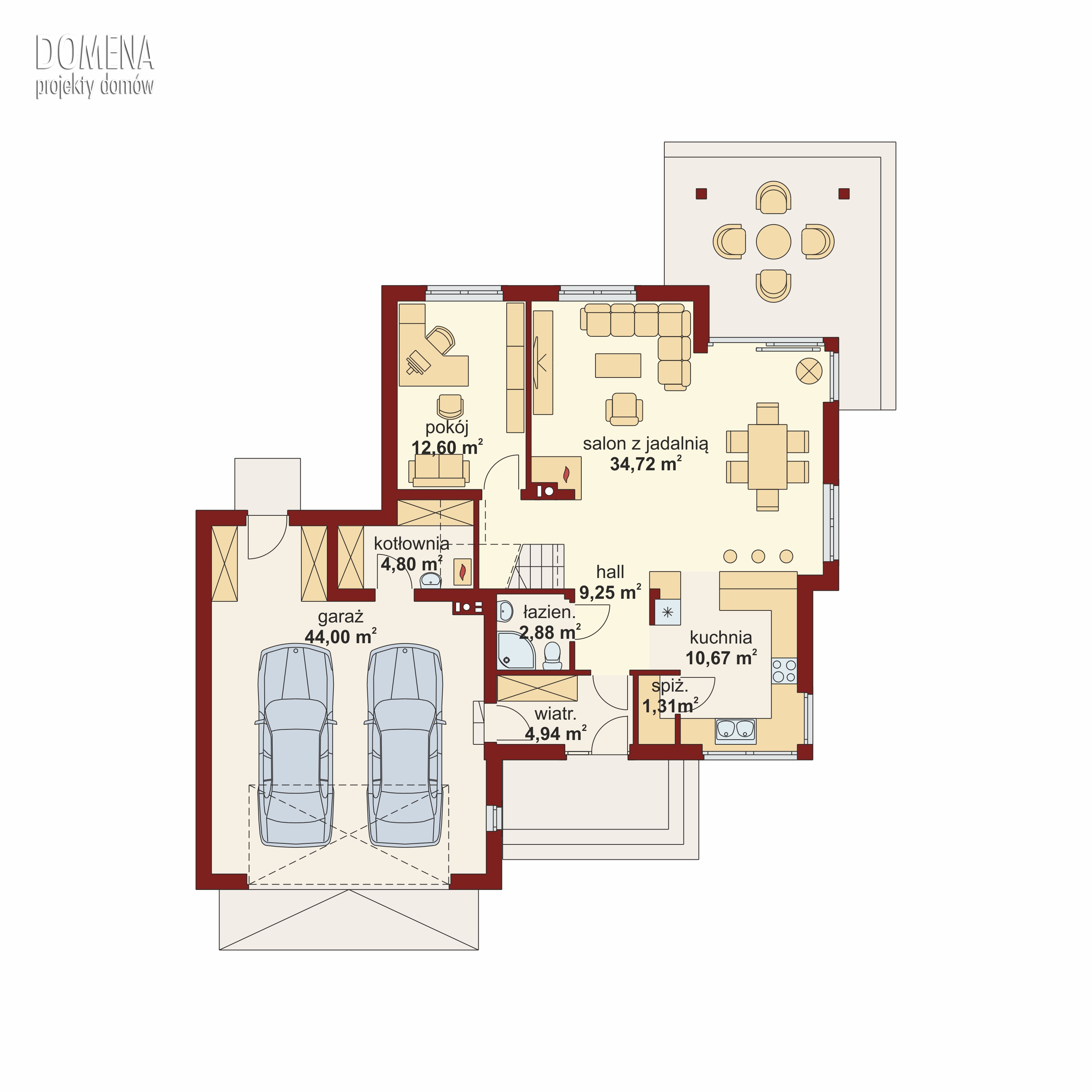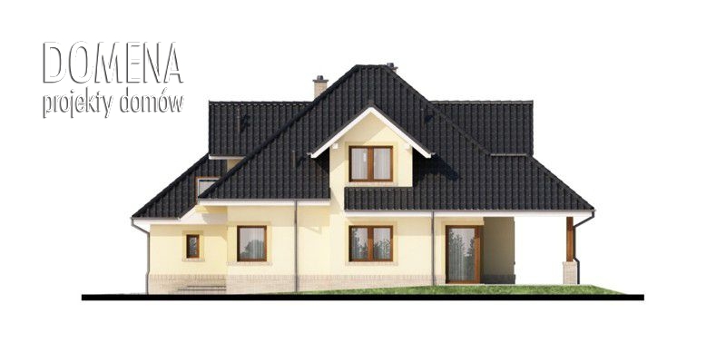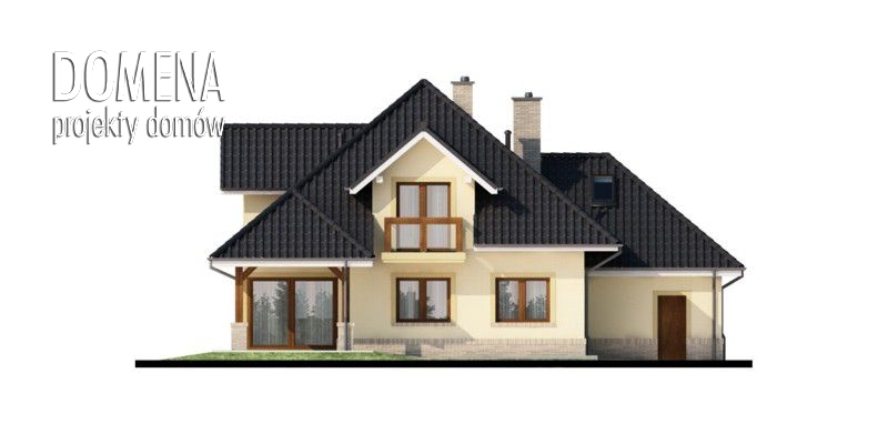 Przestronny dom jednorodzinny z poddaszem użytkowym. Przeznaczony dla 4-5 osobowej rodziny. Drewniany taras nadaje uroku i ciepła podczas wspólnego biesiadowania. Część parterowa tego domu jest bardzo przestronna, co umożliwia swobodne przemieszczanie się, nawet podczas odwiedzin gości. Dodatkowym atutem tego domu jest funkcjonalnie usytuowana jadalnia, która pozwala na podziwianie piękna ogrodu podczas rodzinnych posiłków. Pokój usytuowany za sąsiadującą ścianą salonu, dzięki dobremu zagospodarowaniu, może spełnić zarówno funkcję gabinetu jak i pokoju gościnnego. Godny uwagi jest także garaż, który w połączeniu z wiatrołapem pozwoli na przejście do części mieszkalnej bez konieczności wychodzenia na zewnątrz. Poddasze to zaciszne miejsce, na którym zaprojektowana została jasna łazienka oraz 3 niezależne pokoje w tym 2 z prywatną garderobą i balkonem.