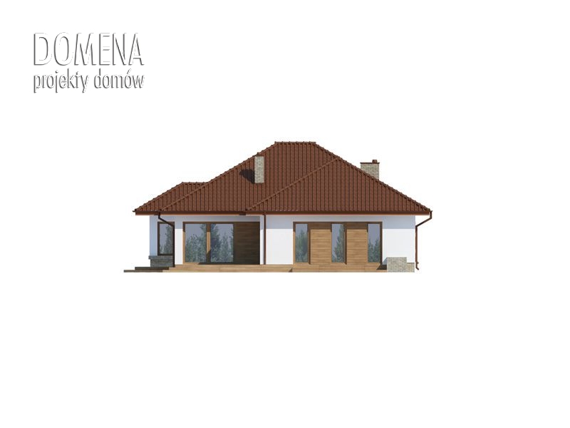 KASANDRA 2 to dom parterowy zaprojektowany dla rodziny 4-5-osobowej. Mimo nowoczesnej architektury, podkreślonej dużymi przeszkleniami i wykuszami, budynek sprawia wrażenie przytulnego i gościnnego. Po minięciu praktycznego podcienia przed głównym wejściem do domu, przechodząc przez wiatrołap, wkraczamy do strefy dziennej budynku. Stanowi ją otwarta przestrzeń, z której bez trudu wyodrębnić można salon z kominkiem, ograniczoną dużym przeszkleniem jadalnię oraz kuchnię. Szczególnie atrakcyjnie kształtuje się ta ostatnia, wyposażona w wyspę kuchenną, spiżarnię oraz blat roboczy umieszczony w ciekawy sposób w przeszklonym wykuszu. Można ją także prostymi środkami przekształcić, np. rezygnując ze spiżarni dostawić dodatkowy blat kuchenny, powiększając jednocześnie wiatrołap o miejsce dla szaf, czy dostawiając ściankę działową, z kuchni otwartej zrobić zamkniętą. W drugiej części domu mieści się strefa nocna. Składają się na nią trzy pokoje, w tym dwa z osobnym wyjściem na przestronny taras. Jedna z sypialni posiada indywidualną łazienkę oraz wydzieloną przestrzeń na szafy, kosztem której możemy powiększyć bądź łazienkę, bądź samą sypialnię. Przy ogólnodostępnej łazience znajduje się pralnia, z której rezygnując zyskujemy przestronny salon kąpielowy. Bezpośrednio z wiatrołapu dostępny jest dwustanowiskowy garaż z podręcznym przejściem do kotłowni. W hallu głównym, w przestrzeni oryginalnie przeznaczonej na szafy, można zamiennie usytuować schody, prowadzące na zaadaptowane na cele mieszkalne poddasze.