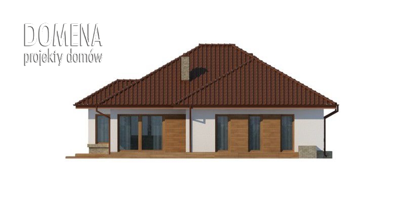 Kasandra to dom parterowy zaprojektowany dla rodziny 4-5-osobowej. Mimo nowoczesnej architektury, podkreślonej dużymi przeszkleniami i wykuszami, budynek sprawia wrażenie przytulnego i gościnnego. Po minięciu praktycznego podcienia przed głównym wejściem do domu, przechodząc przez wiatrołap, wkraczamy do strefy dziennej budynku. Stanowi ją otwarta przestrzeń, z której bez trudu wyodrębnić można salon z kominkiem, ograniczoną dużym przeszkleniem jadalnię oraz kuchnię. Szczególnie atrakcyjnie kształtuje się ta ostatnia, wyposażona w wyspę kuchenną, spiżarnię oraz blat roboczy umieszczony w ciekawy sposób w przeszklonym wykuszu. Można ją także prostymi środkami przekształcić, np. rezygnując ze spiżarni dostawić dodatkowy blat kuchenny, powiększając jednocześnie wiatrołap o miejsce dla szaf, czy dostawiając ściankę działową, z kuchni otwartej zrobić zamkniętą. W drugiej części domu mieści się strefa nocna. Składają się na nią trzy pokoje, w tym dwa z nich z osobnym wyjściem na przestronny taras. Jedna z sypialni posiada indywidualną łazienkę oraz wydzieloną przestrzeń na szafy, kosztem której możemy powiększyć bądź łazienkę, bądź samą sypialnię. Przy ogólnodostępnej łazience znajduje się pralnia, z której rezygnując zyskujemy przestronny salon kąpielowy. Strefa pomocnicza z kotłownią i garażem dostępna jest bezpośrednio z wiatrołapu. W hallu głównym, w przestrzeni oryginalnie przeznaczonej na szafy, można zamiennie usytuować schody, prowadzące na zaadaptowane na cele mieszkalne poddasze.