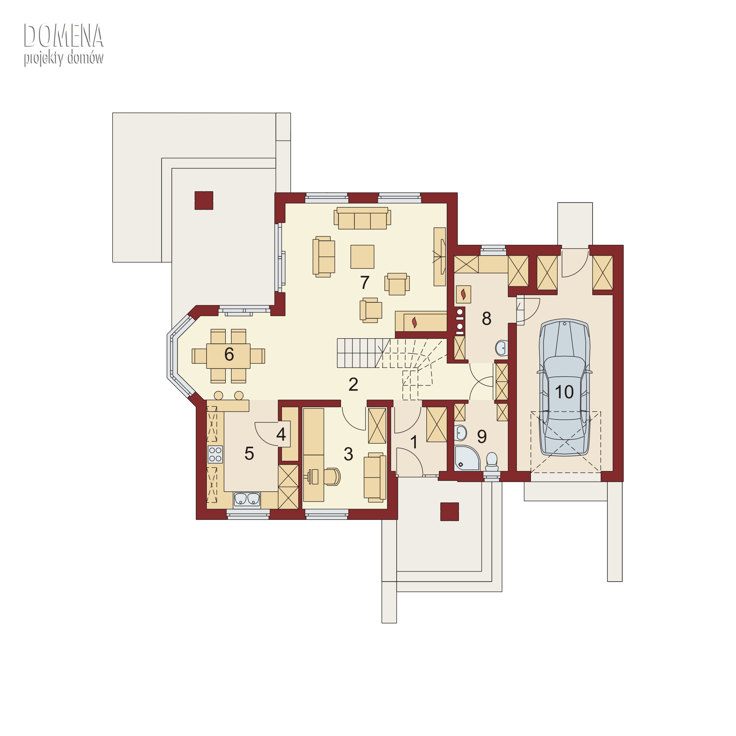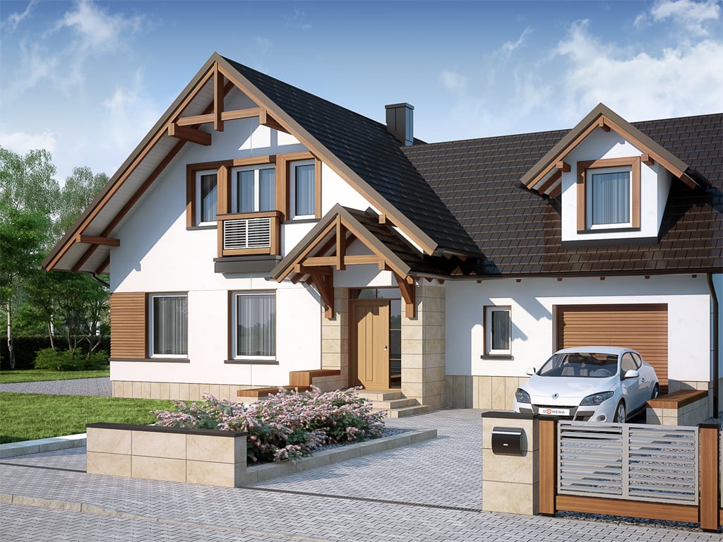 Kaspian N to dom o klasycznej bryle, wyśmienicie wpisujący się w każde otoczenie. Ma on czytelny podział na trzy strefy funkcjonalne: dzienną i gospodarczą na parterze oraz nocną na poddaszu. W skład pierwszej z nich wchodzi salon z kominkiem oraz wyjściem na przekryty praktycznym zadaszeniem taras. Zaraz obok rysuje się charakterystyczna, położona w wykuszu, przestrzeń przeznaczona na jadalnię. Od kuchni dzieli ją pomysłowy barek. Cała strefa dzienna jest tak zaprojektowana, iż może funkcjonować jako jednorodna przestrzeń. Równocześnie, zarówno salon, jadalnia, jak i kuchnia, mogą stanowić osobne pomieszczenia. Zaraz przy wejściu znajduje się pokój, mogący służyć za np. gabinet czy pokój gościnny. Niejako osobną część budynku stanowi strefa gospodarcza. Przynależy do niej kotłownia, dostępna od strony mieszkalnej i garażowej oraz sam garaż, z osobnym wejściem od strony ogrodowej. Część nocna to trzy sypialnie, każda z nich z osobnym tarasem, garderoba oraz łazienka. Strych może być także zaadaptowany na dodatkowy pokój użytkowy.