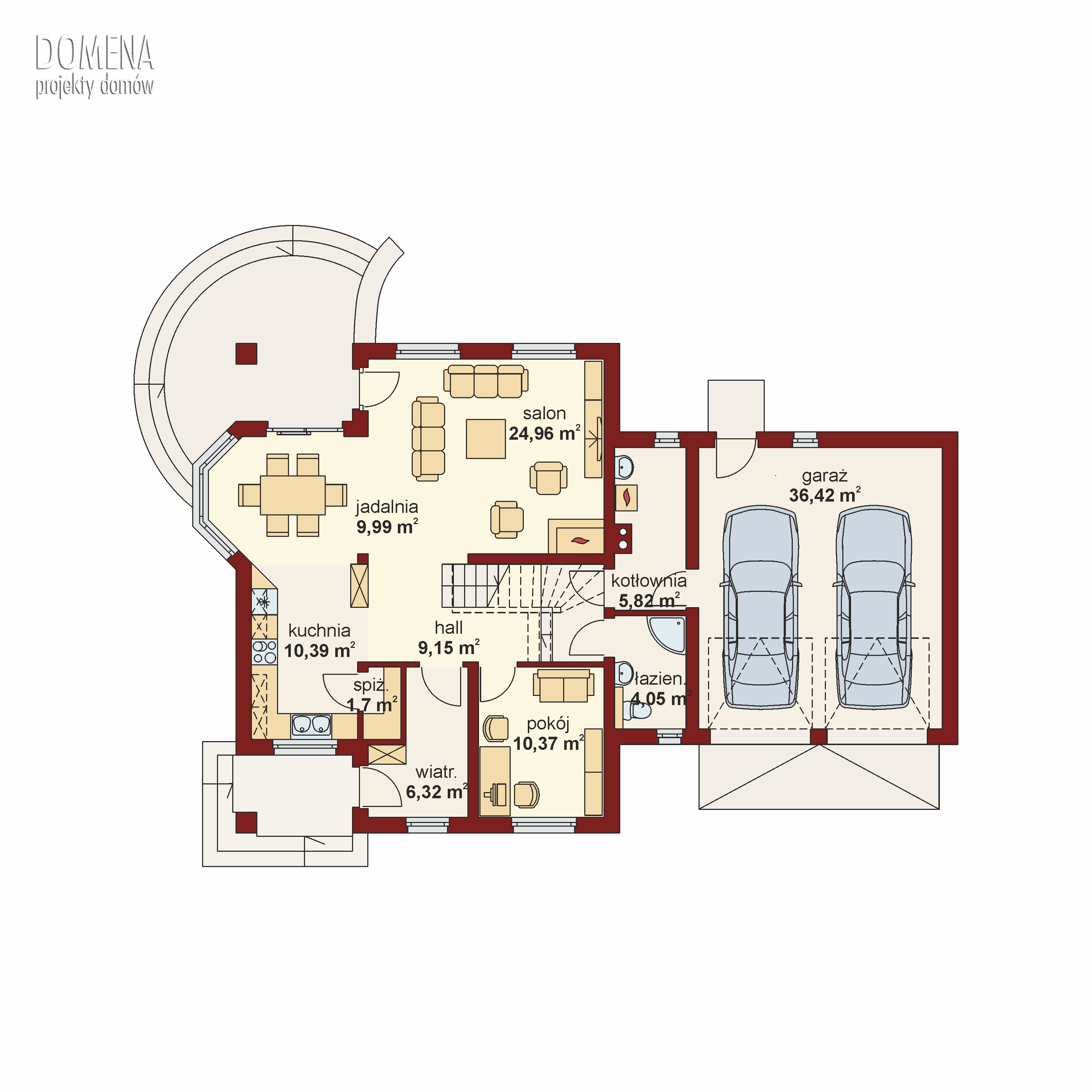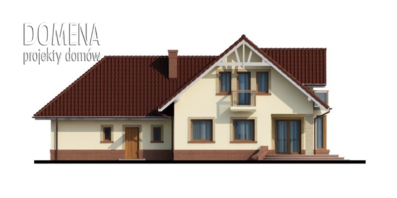 Gustowny dom parterowy z poddaszem użytkowym. Idealny dla 4-5 osobowej rodziny. Jego elegancka forma daje komfort domownikom oraz cieszy oko przechodniów. Klasyczny podział na strefę dzienną na parterze oraz nocną na poddaszu sprawia, że dom jest niezwykle funkcjonalny i praktyczny. Duży salon z ciekawie umiejscowionym kominkiem, jadalnia i przestronna kuchnia to miejsce na wspólne spotkania rodzinne. Na parterze zaprojektowano pokój, który może pełnić rolę gabinetu, jak również dodatkowej sypialni dla gości. Praktycznym rozwiązaniem jest dostęp do garażu od strony elewacji ogrodowej. Umożliwia łatwy dostęp do części gospodarczej domu. Poddasze to trzy sypialnie oraz obszerna łazienka. Sypialnia gospodarzy posiada prywatną garderobę, która zwiększa swobodę domowników. Obszerny strych możemy zaadaptować na dodatkowy pokój hobby oraz garderobę z praktycznym schowkiem.