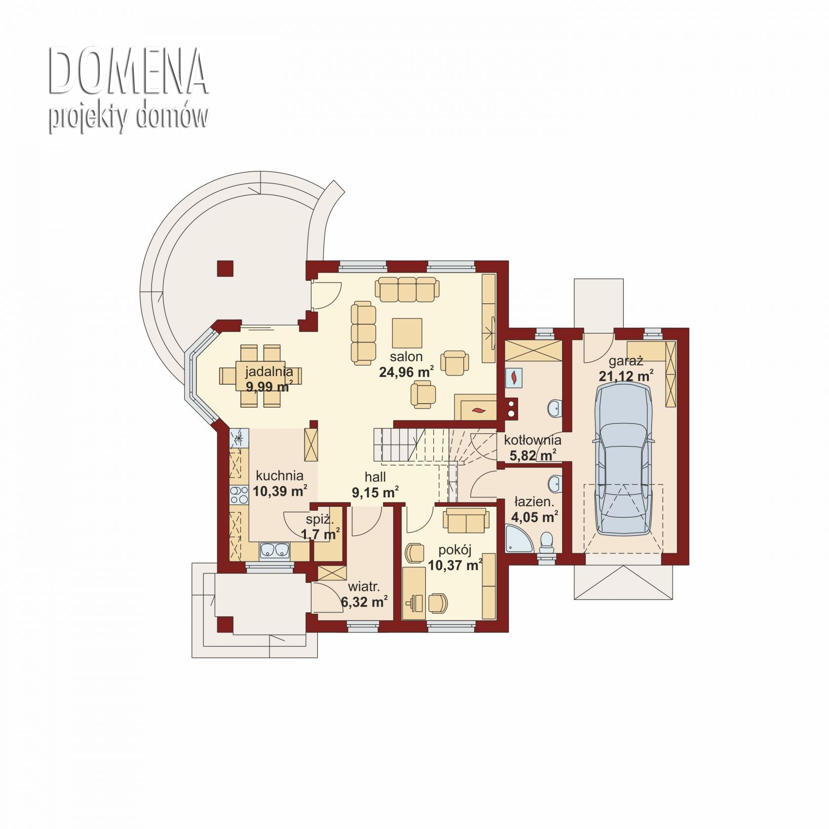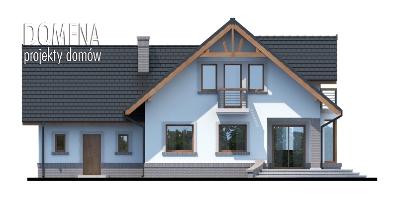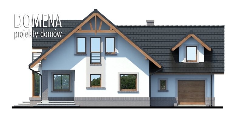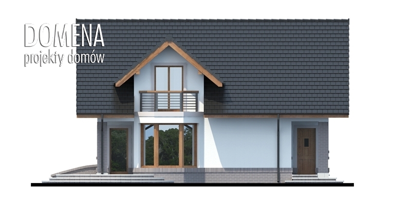 Gustowny dom parterowy z poddaszem użytkowym. Idealny dla 4-5 osobowej rodziny. Jego elegancka forma daje komfort domownikom oraz cieszy oko przechodniów. Klasyczny podział na strefę dzienną na parterze oraz nocną na poddaszu sprawia, że dom jest niezwykle funkcjonalny i praktyczny. Duży salon z ciekawie umiejscowionym kominkiem, jadalnia i przestronna kuchnia to miejsce na wspólne spotkania rodzinne. Na parterze zaprojektowano pokój, który może pełnić rolę gabinetu, jak również dodatkowej sypialni dla gości. Praktycznym rozwiązaniem jest dostęp do garażu od strony elewacji ogrodowej. Umożliwia łatwy dostęp do części gospodarczej domu. Poddasze to trzy sypialnie oraz obszerna łazienka. Sypialnia gospodarzy posiada prywatną garderobę, która zwiększa swobodę domowników. Obszerny strych możemy zaadaptować na dodatkowy pokój hobby oraz garderobę z praktycznym schowkiem.