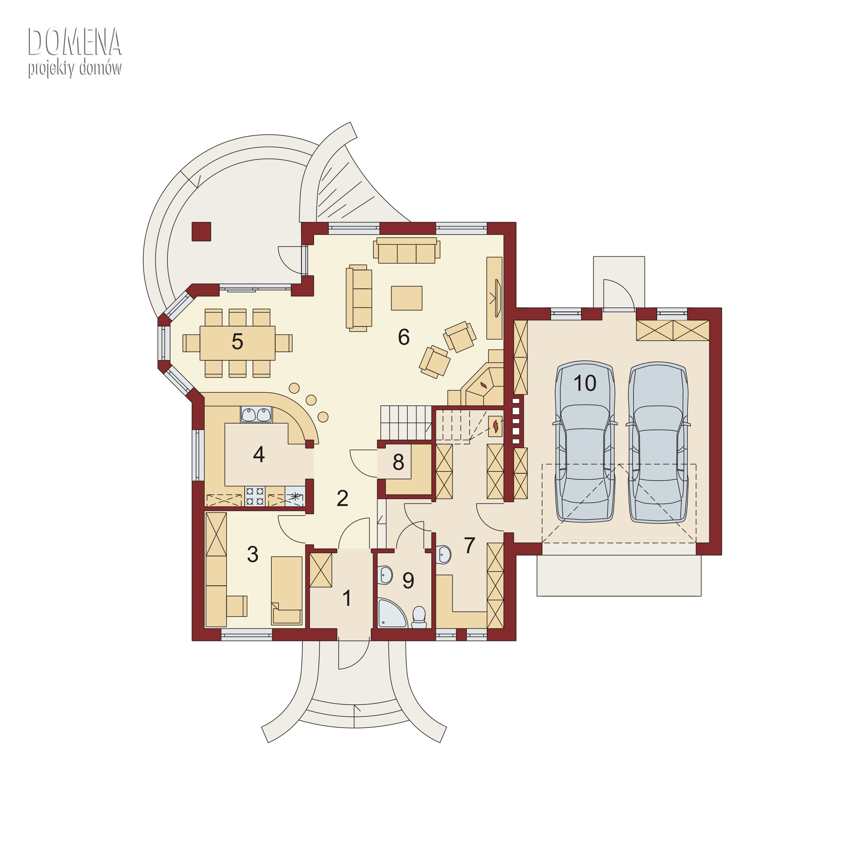 Dom z poddaszem użytkowym, przeznaczony dla 4-5-osobowej rodziny. Na parterze znajduje się przestronny pokój dzienny połączony z jadalnią i otwartą kuchnią. Rozwiązanie funkcjonalne pozwala na oddzielenie ww. pomieszczeń.