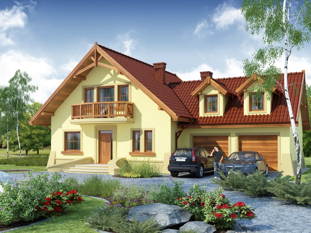 Dom z poddaszem użytkowym, przeznaczony dla 4-5-osobowej rodziny. Na parterze znajduje się przestronny pokój dzienny otwarty na jadalnię połączoną z kuchnią. Rozwiązanie funkcjonalne pozwala na wydzielenie ww. pomieszczeń. W ramach adaptacji istnieje możliwość powiększenia kuchni z jadalnią i tarasu w podcieniu kosztem dodatkowego pokoju na parterze oraz lokalizacji kotłowni za garażem zyskując większy wiatrołap i łatwiejszy dostęp do garażu. Istnieje możliwość zabudowy bliźniaczej w ramach adaptacji. Dostępna wersja w lustrzanym odbiciu.
