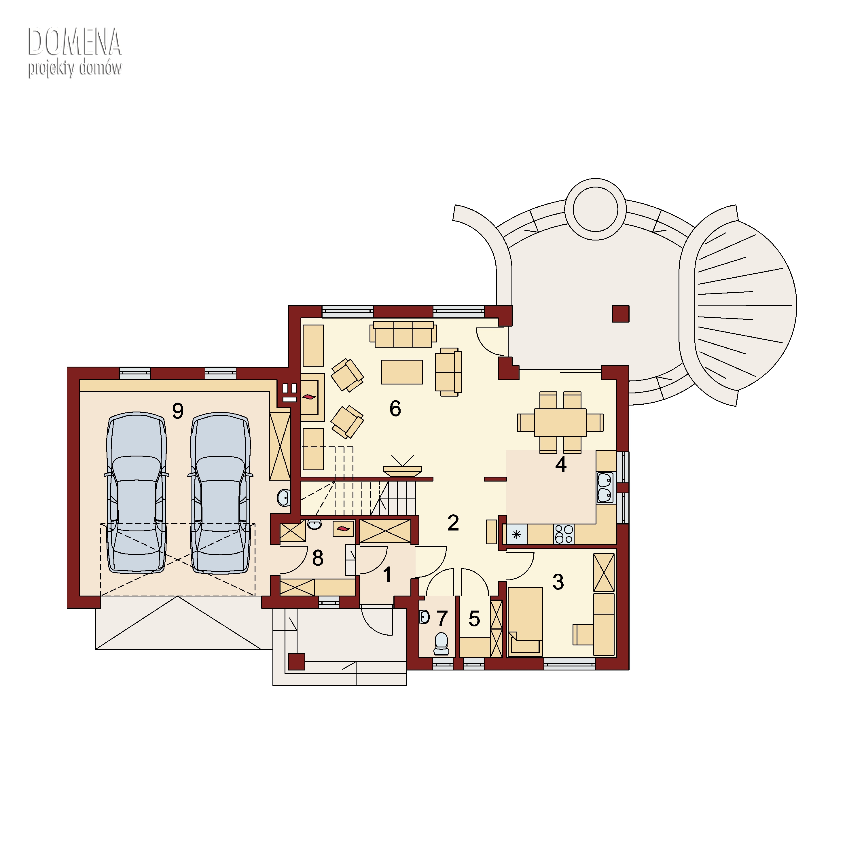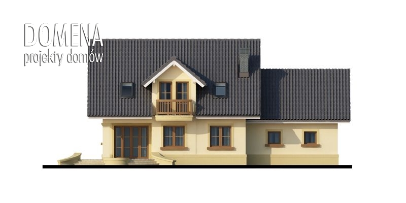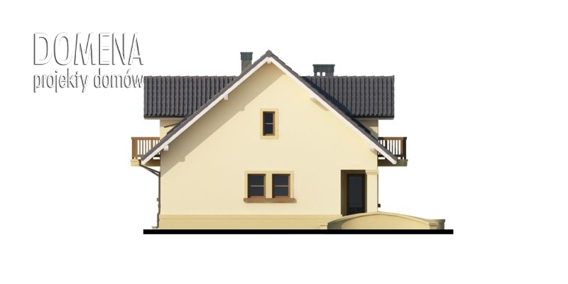 Dom z poddaszem użytkowym, przeznaczony dla 4-5-osobowej rodziny. Na parterze znajduje się przestronny pokój dzienny otwarty na jadalnię połączoną z kuchnią. Rozwiązanie funkcjonalne pozwala na wydzielenie ww. pomieszczeń. W ramach adaptacji istnieje możliwość powiększenia kuchni z jadalnią i tarasu w podcieniu kosztem dodatkowego pokoju na parterze oraz lokalizacji kotłowni za garażem zyskując większy wiatrołap i łatwiejszy dostęp do garażu. Istnieje możliwość zabudowy bliźniaczej w ramach adaptacji. Dostępna wersja w lustrzanym odbiciu.