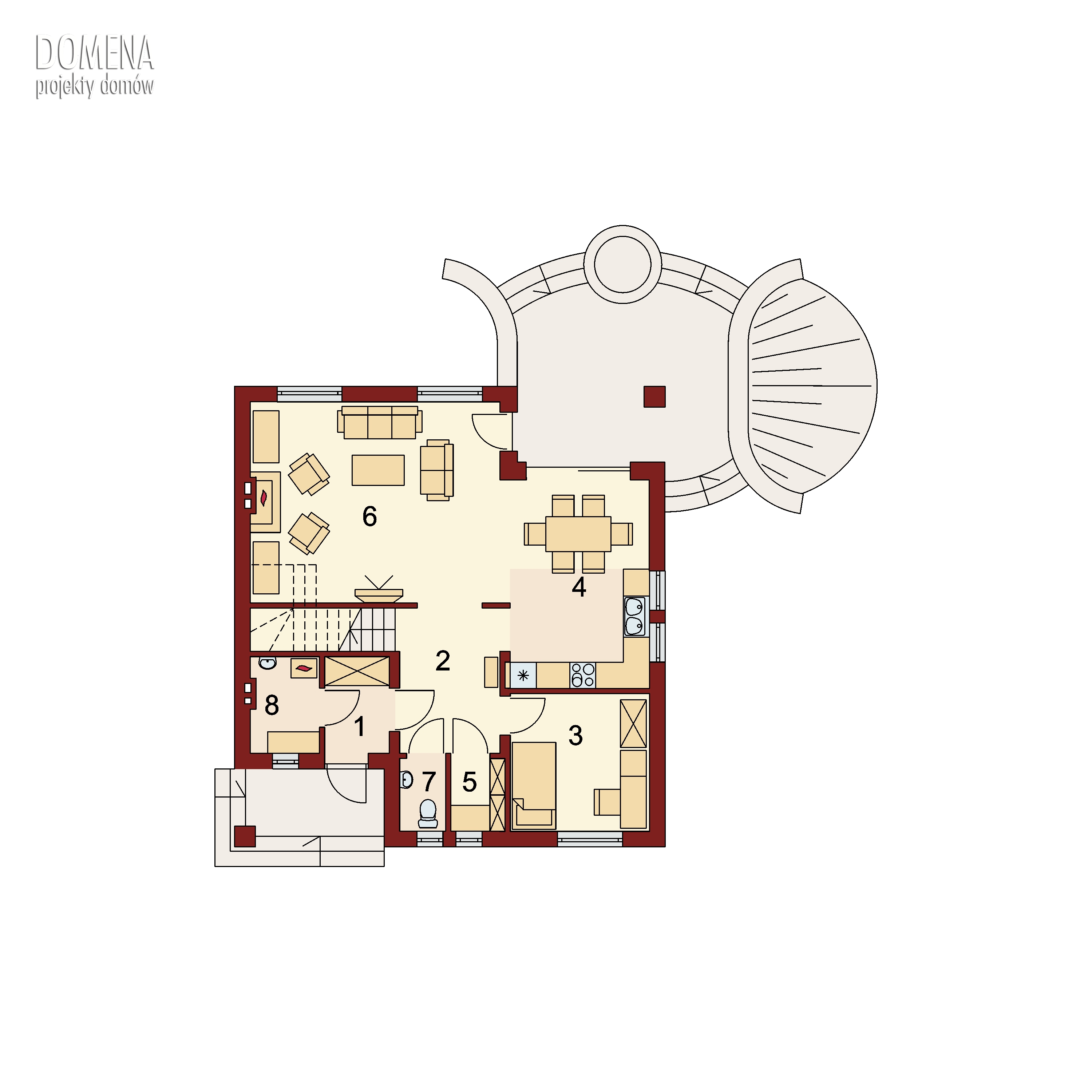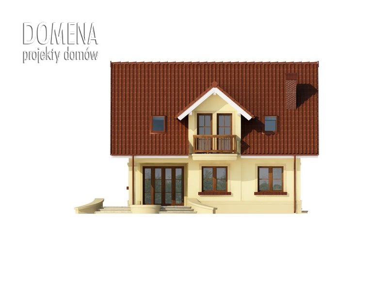 Dom z poddaszem użytkowym, przeznaczony dla 4-5-osobowej rodziny. Na parterze znajduje się przestronny pokój dzienny otwarty na jadalnię połączoną z kuchnią. Rozwiązanie funkcjonalne pozwala na wydzielenie ww. pomieszczeń. Wyjście na taras z podcieniem jest możliwe zarówno z jadalni jak i z pokoju dziennego. Na parterze znajduje się spiżarnia, wc oraz dodatkowy pokój, a także pomieszczenie gospodarcze, przez które można się dostać do garażu. Na poddaszu znajdują się trzy sypialnie, dwie łazienki oraz garderoba. W ramach adaptacji istnieje możliwość powiększenia kuchni z jadalnią i tarasu w podcieniu kosztem dodatkowego pokoju na parterze. Dzięki prostym rozwiązaniom konstrukcyjnym i nieskomplikowanej bryle jest on niedrogi w budowie i eksploatacji.